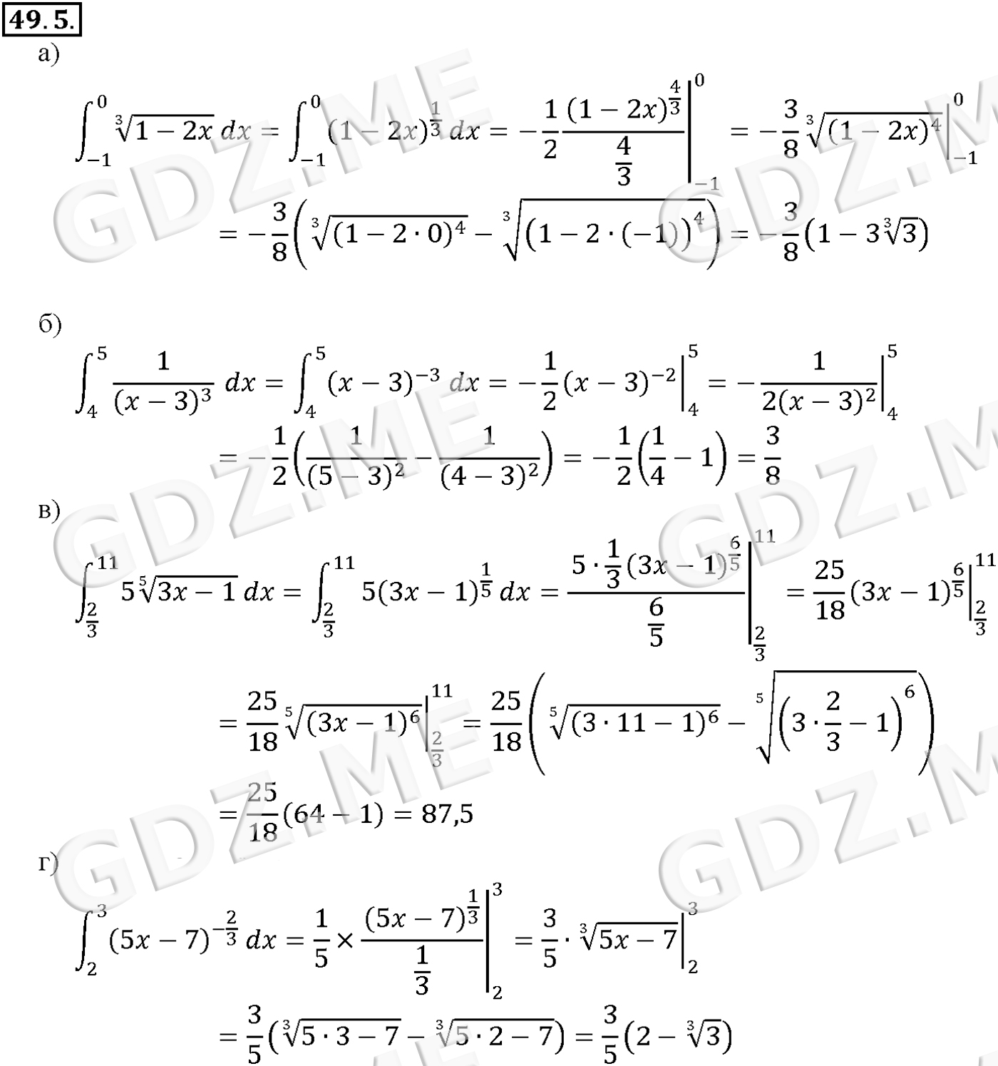 Подробный вариант решения из решебника (ГДЗ): Задание номер 49-5 (Глава 7 Показательная и логарифмическая функции. Глава 8 Первообразная и интеграл. §49. Определенный интеграл) по предмету Алгебра, за 10 класс, авторы учебника Мордкович, Александрова.
