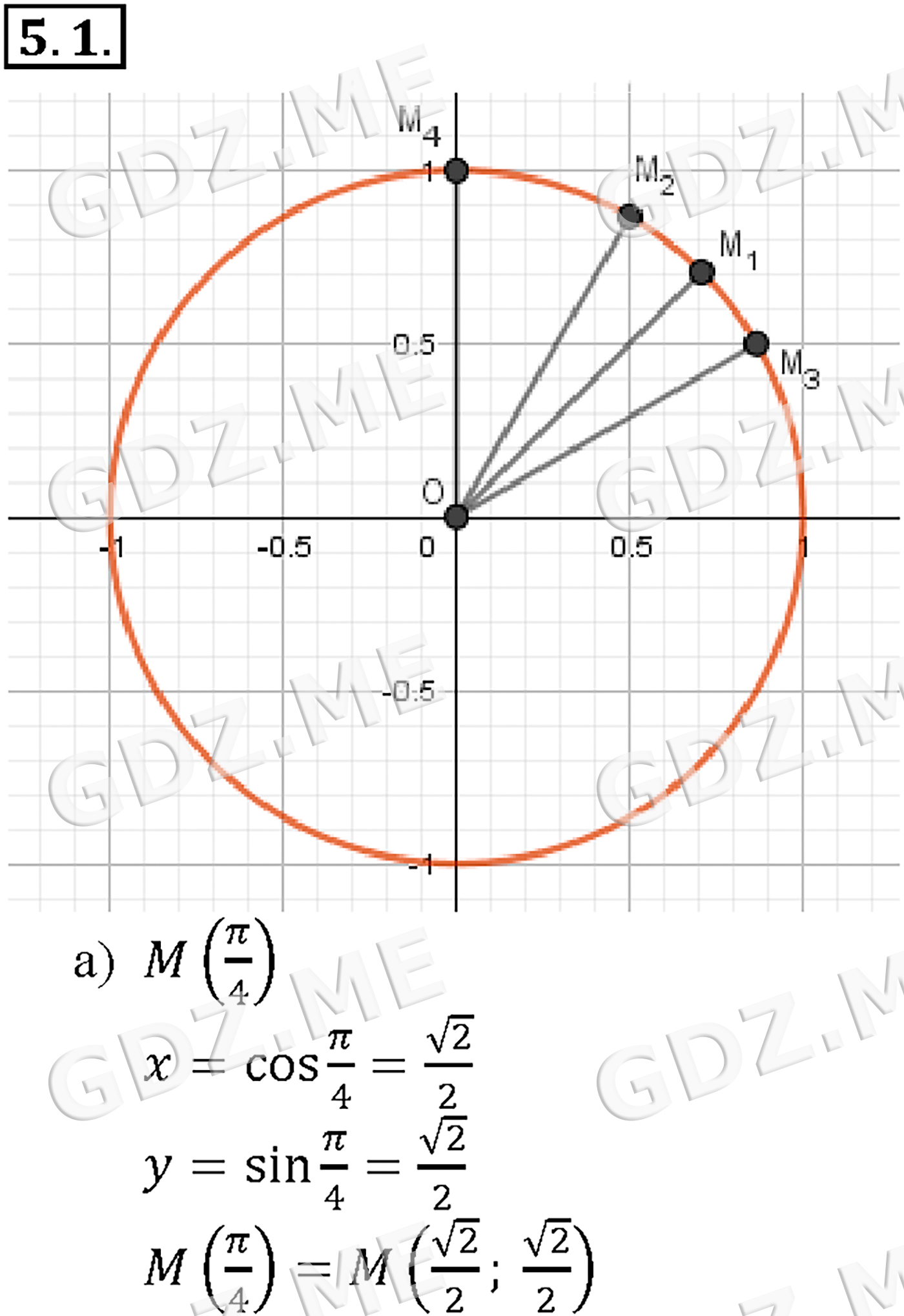 Подробный вариант решения из решебника (ГДЗ): Задание номер 5-1_1 (Глава 2 Тригонометрические функции. §5. Числовая окружность на координатной плоскости) по предмету Алгебра, за 10 класс, авторы учебника Мордкович, Александрова.