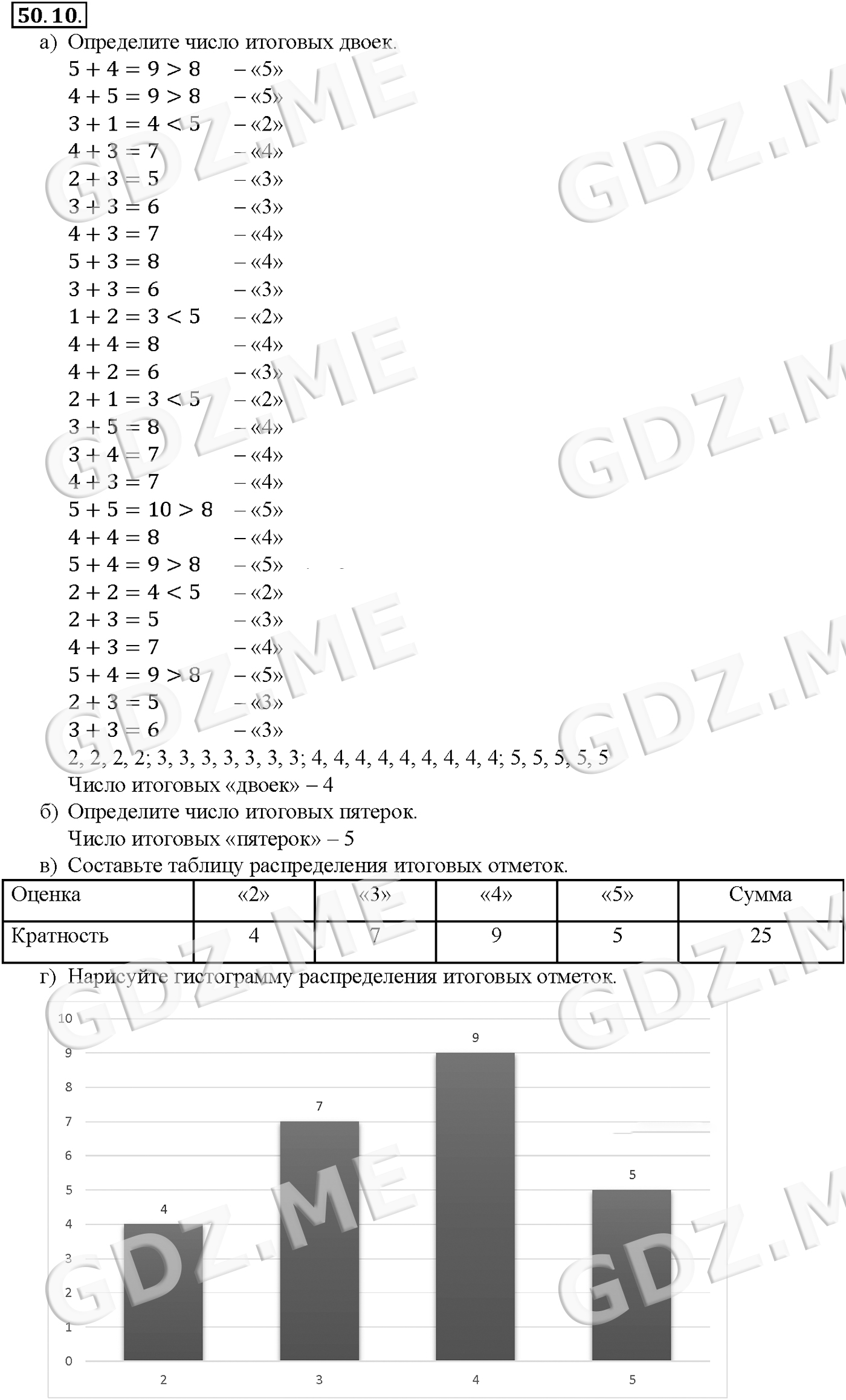 Подробный вариант решения из решебника (ГДЗ): Задание номер 50-10 (Глава 8 Первообразная и интеграл. Глава 9 Элементы математической статистики, комбинаторики и теории. §50. Статистическая обработка данных) по предмету Алгебра, за 10 класс, авторы учебника Мордкович, Александрова.
