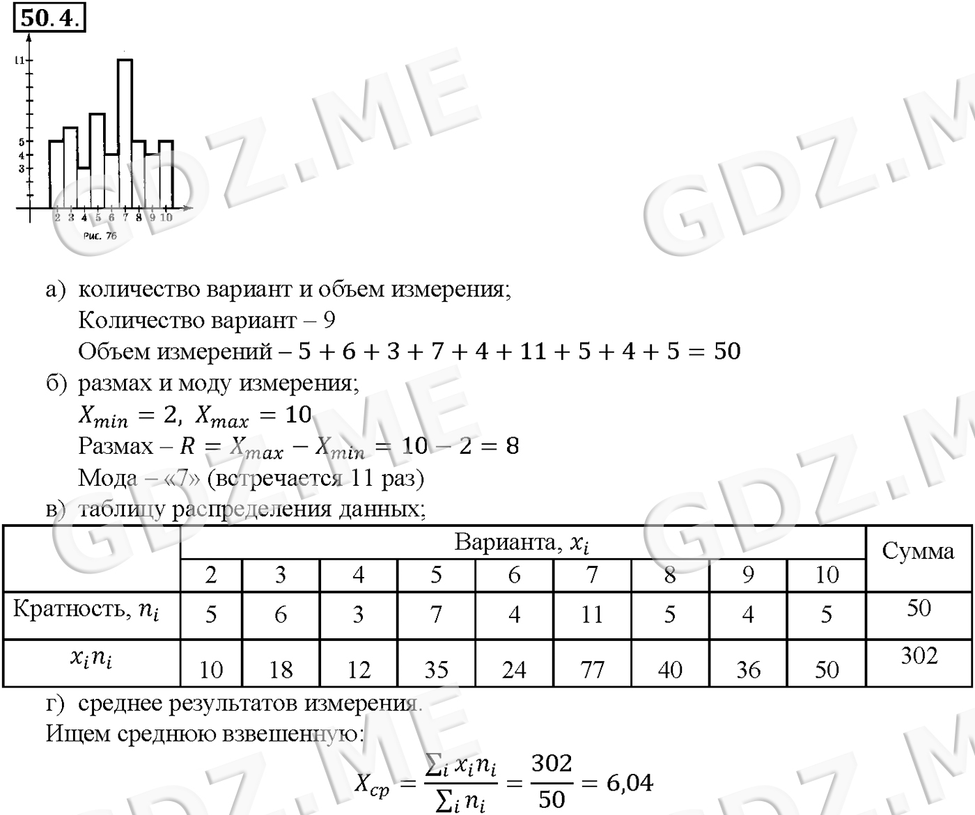 Подробный вариант решения из решебника (ГДЗ): Задание номер 50-4 (Глава 8 Первообразная и интеграл. Глава 9 Элементы математической статистики, комбинаторики и теории. §50. Статистическая обработка данных) по предмету Алгебра, за 10 класс, авторы учебника Мордкович, Александрова.