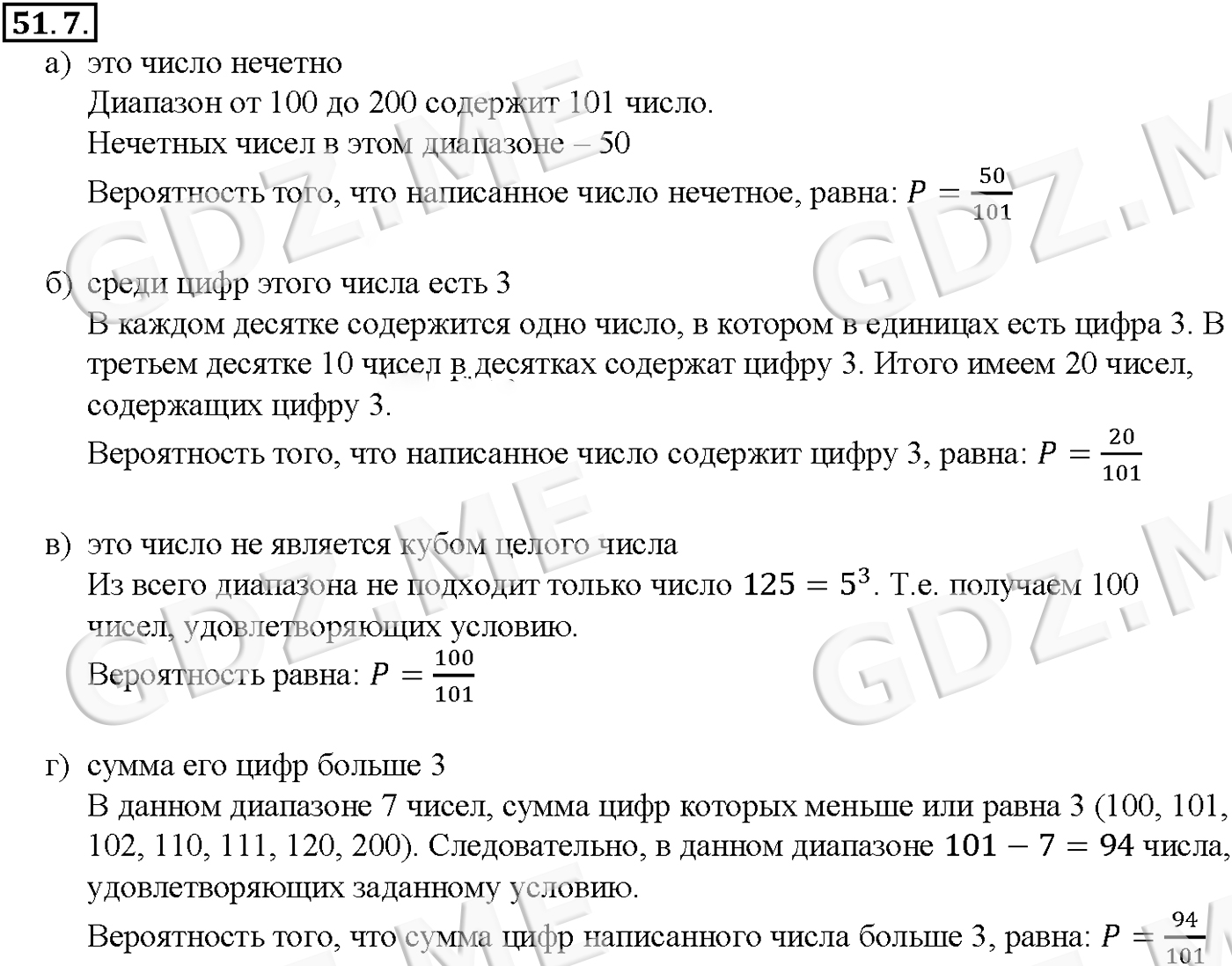 Подробный вариант решения из решебника (ГДЗ): Задание номер 51-7 (Глава 8 Первообразная и интеграл. Глава 9 Элементы математической статистики, комбинаторики и теории. §51. Простейшие вероятностные задачи) по предмету Алгебра, за 10 класс, авторы учебника Мордкович, Александрова.