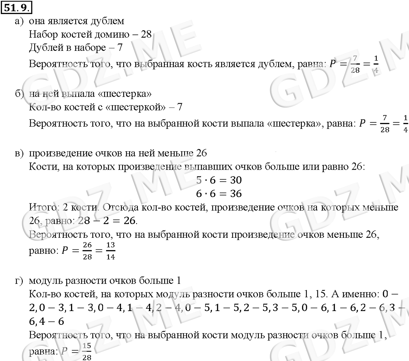 Подробный вариант решения из решебника (ГДЗ): Задание номер 51-9 (Глава 8 Первообразная и интеграл. Глава 9 Элементы математической статистики, комбинаторики и теории. §51. Простейшие вероятностные задачи) по предмету Алгебра, за 10 класс, авторы учебника Мордкович, Александрова.