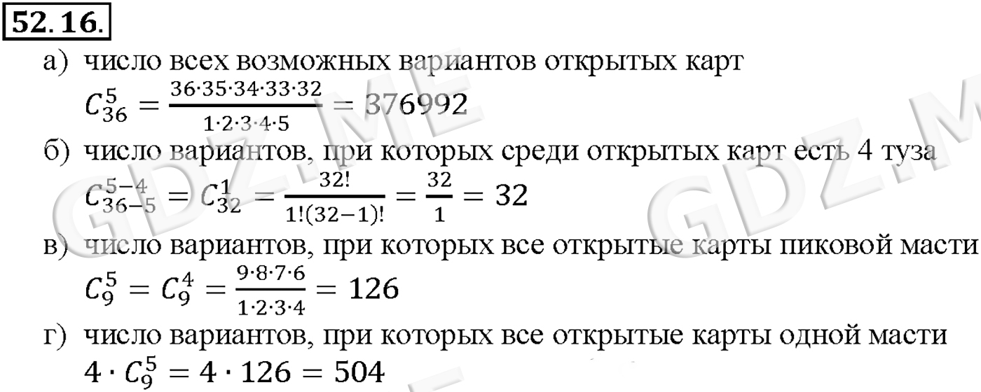 Подробный вариант решения из решебника (ГДЗ): Задание номер 52-16 (Глава 8 Первообразная и интеграл. Глава 9 Элементы математической статистики, комбинаторики и теории. §52. Сочетания и размещения) по предмету Алгебра, за 10 класс, авторы учебника Мордкович, Александрова.