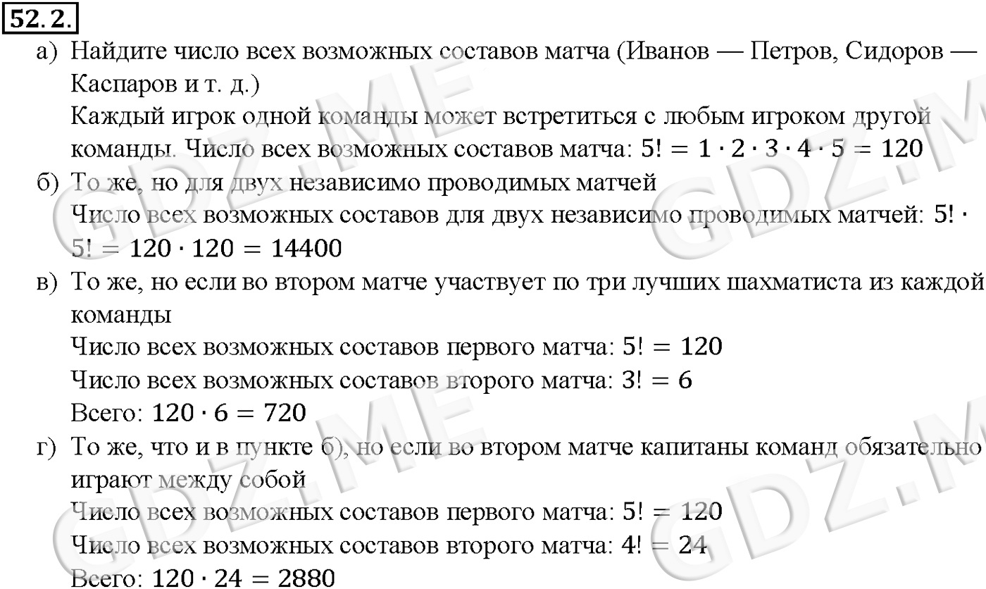 Подробный вариант решения из решебника (ГДЗ): Задание номер 52-2 (Глава 8 Первообразная и интеграл. Глава 9 Элементы математической статистики, комбинаторики и теории. §52. Сочетания и размещения) по предмету Алгебра, за 10 класс, авторы учебника Мордкович, Александрова.