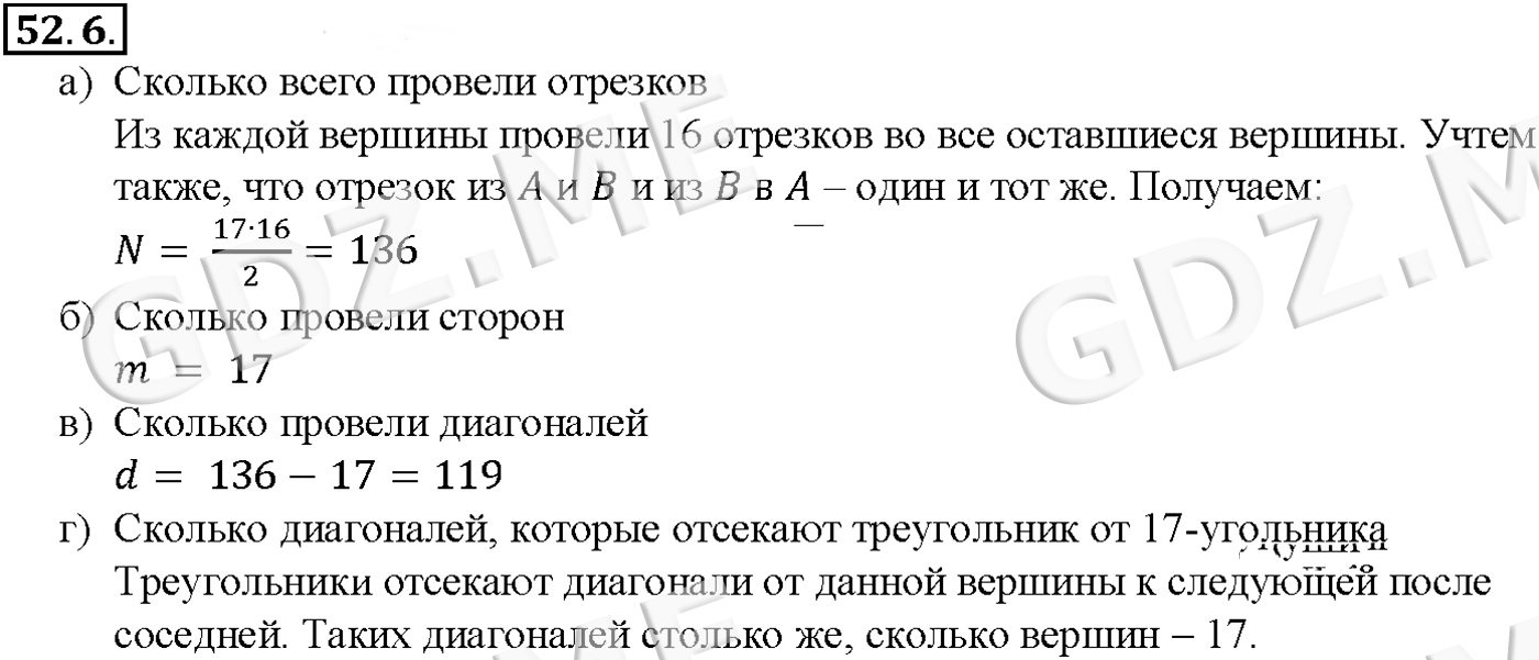 Подробный вариант решения из решебника (ГДЗ): Задание номер 52-6 (Глава 8 Первообразная и интеграл. Глава 9 Элементы математической статистики, комбинаторики и теории. §52. Сочетания и размещения) по предмету Алгебра, за 10 класс, авторы учебника Мордкович, Александрова.