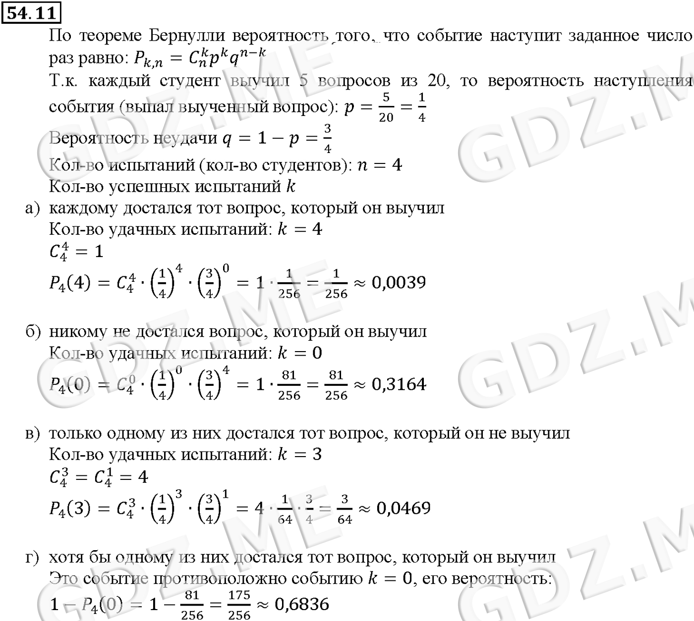 Подробный вариант решения из решебника (ГДЗ): Задание номер 54-11 (Глава 8 Первообразная и интеграл. Глава 9 Элементы математической статистики, комбинаторики и теории. §54. Случайные события и их вероятности) по предмету Алгебра, за 10 класс, авторы учебника Мордкович, Александрова.