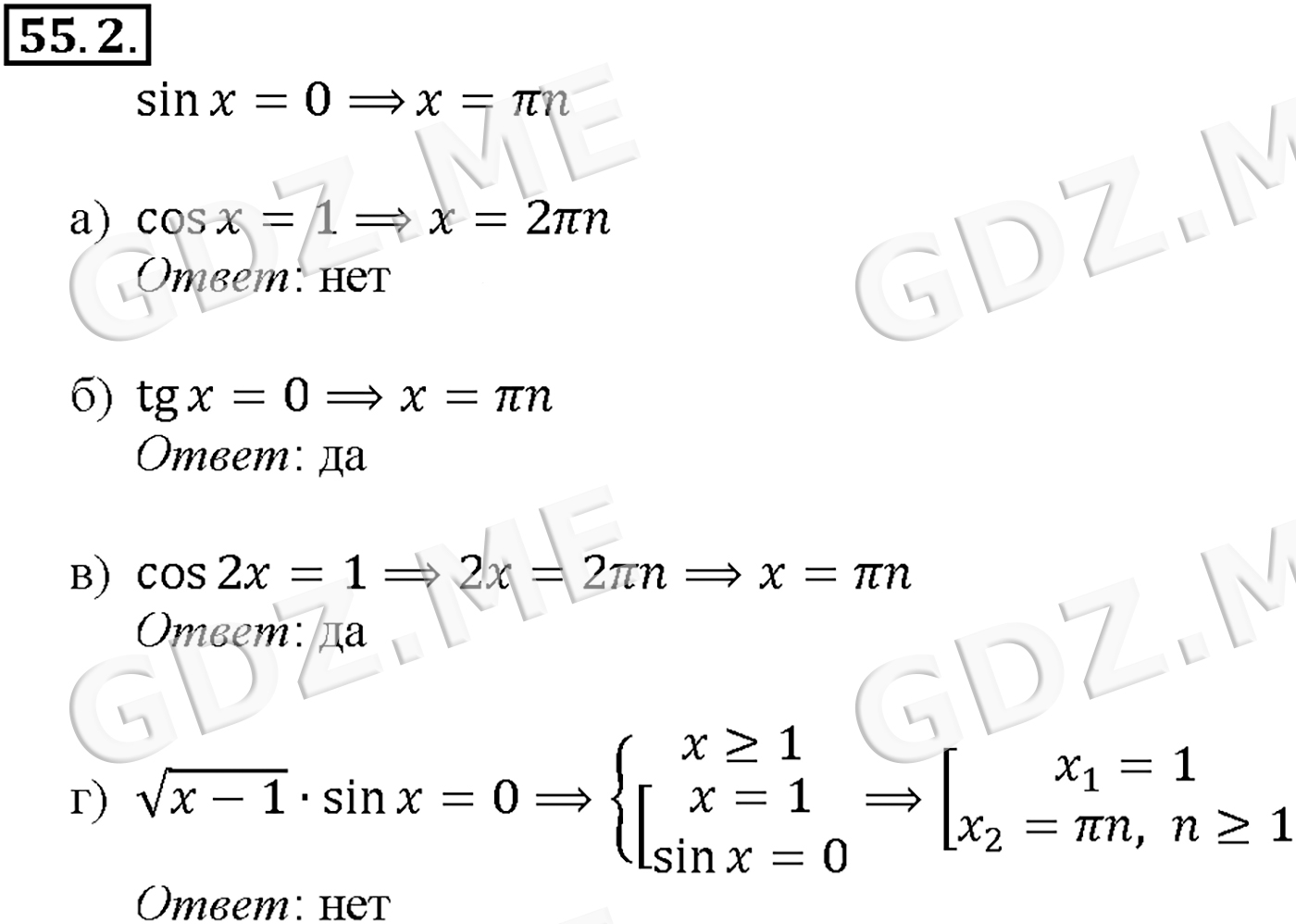 Подробный вариант решения из решебника (ГДЗ): Задание номер 55-2 (Глава 9 Элементы математической статистики, комбинаторики и теории. Глава 10 Уравнения и неравенства. Системы уравнений и неравенств. §55. Равносильность уравнений) по предмету Алгебра, за 10 класс, авторы учебника Мордкович, Александрова.