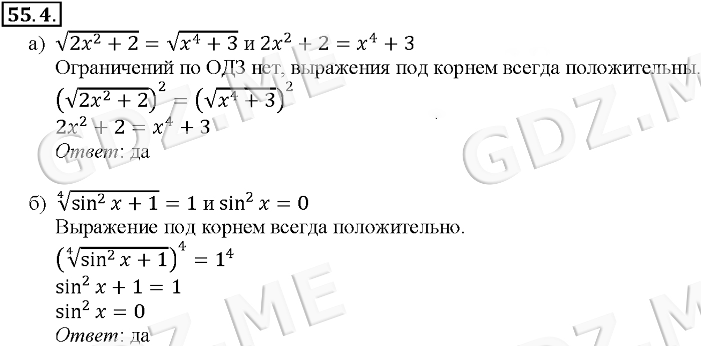 Подробный вариант решения из решебника (ГДЗ): Задание номер 55-4 (Глава 9 Элементы математической статистики, комбинаторики и теории. Глава 10 Уравнения и неравенства. Системы уравнений и неравенств. §55. Равносильность уравнений) по предмету Алгебра, за 10 класс, авторы учебника Мордкович, Александрова.