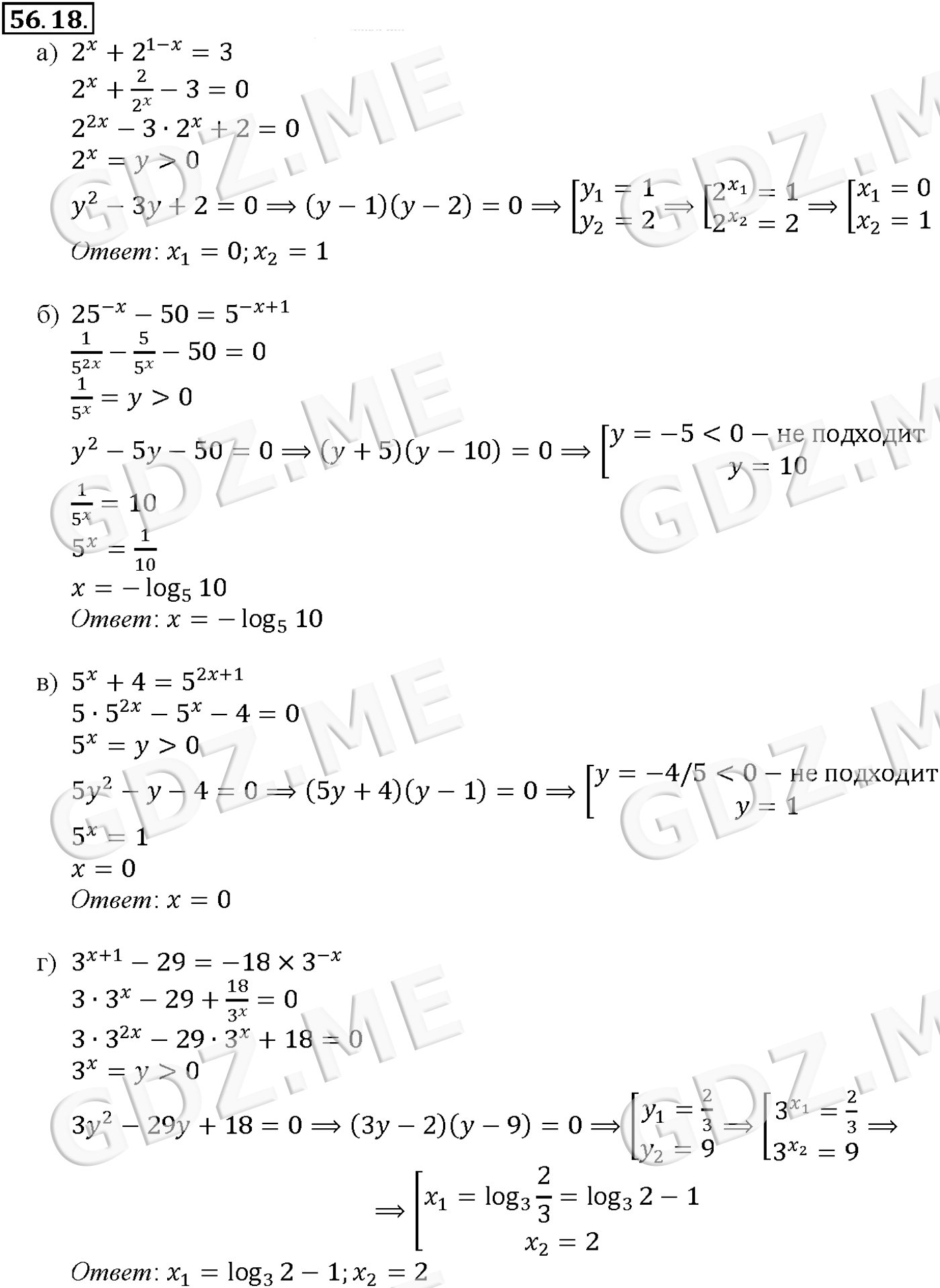 Подробный вариант решения из решебника (ГДЗ): Задание номер 56-18 (Глава 9 Элементы математической статистики, комбинаторики и теории. Глава 10 Уравнения и неравенства. Системы уравнений и неравенств. §56. Общие методы решения уравнений) по предмету Алгебра, за 10 класс, авторы учебника Мордкович, Александрова.