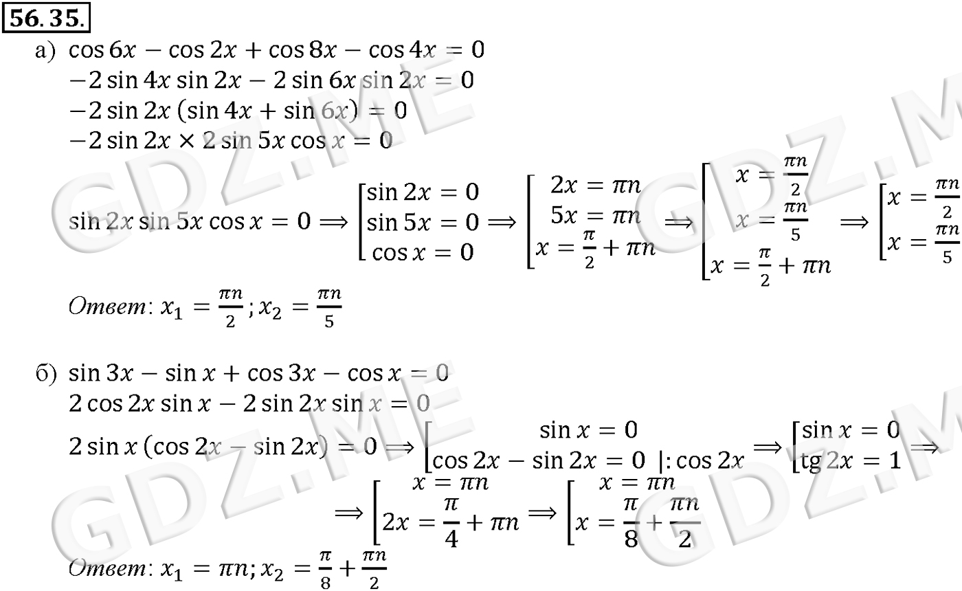 Подробный вариант решения из решебника (ГДЗ): Задание номер 56-35 (Глава 9 Элементы математической статистики, комбинаторики и теории. Глава 10 Уравнения и неравенства. Системы уравнений и неравенств. §56. Общие методы решения уравнений) по предмету Алгебра, за 10 класс, авторы учебника Мордкович, Александрова.