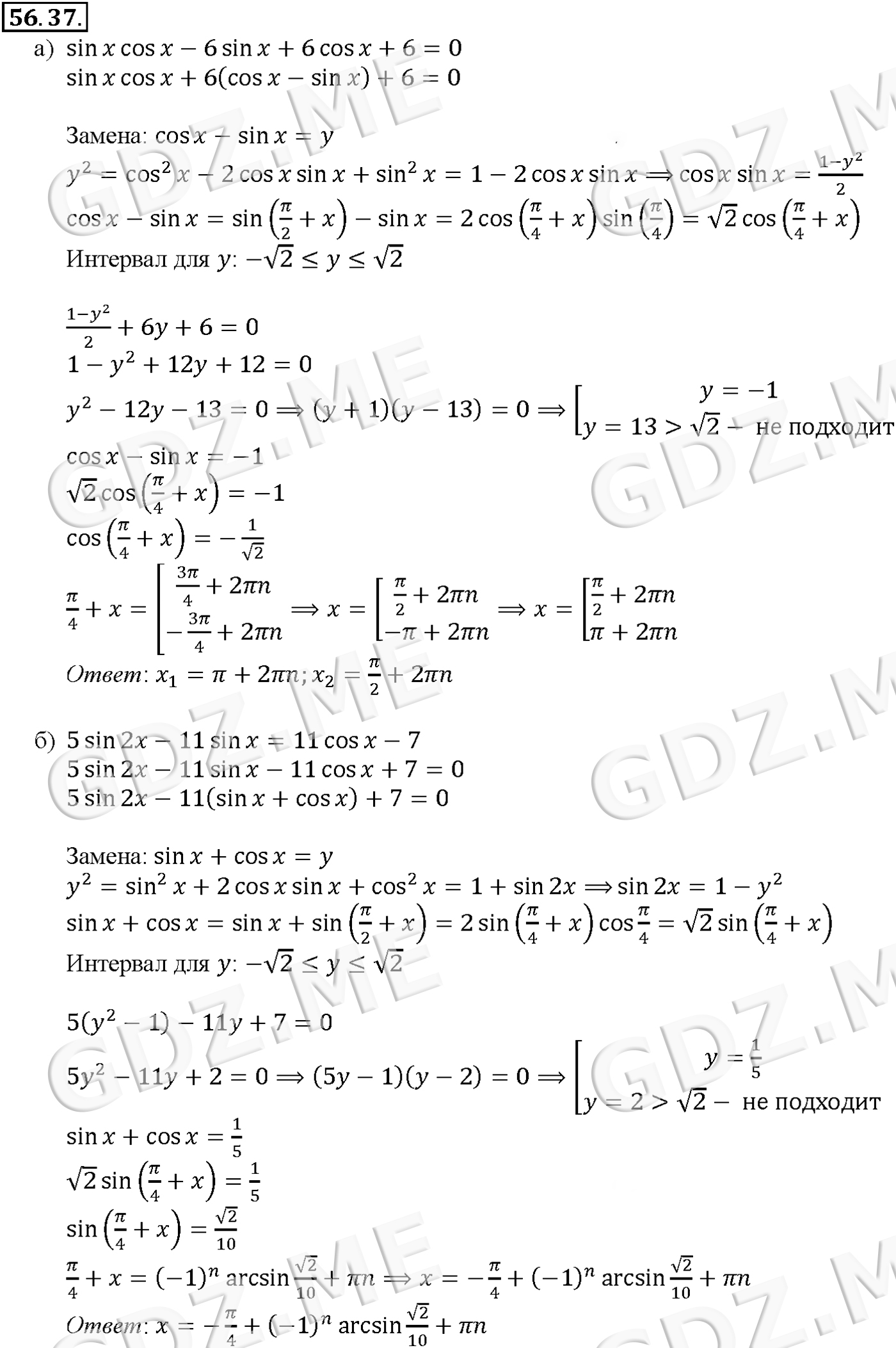Подробный вариант решения из решебника (ГДЗ): Задание номер 56-37 (Глава 9 Элементы математической статистики, комбинаторики и теории. Глава 10 Уравнения и неравенства. Системы уравнений и неравенств. §56. Общие методы решения уравнений) по предмету Алгебра, за 10 класс, авторы учебника Мордкович, Александрова.