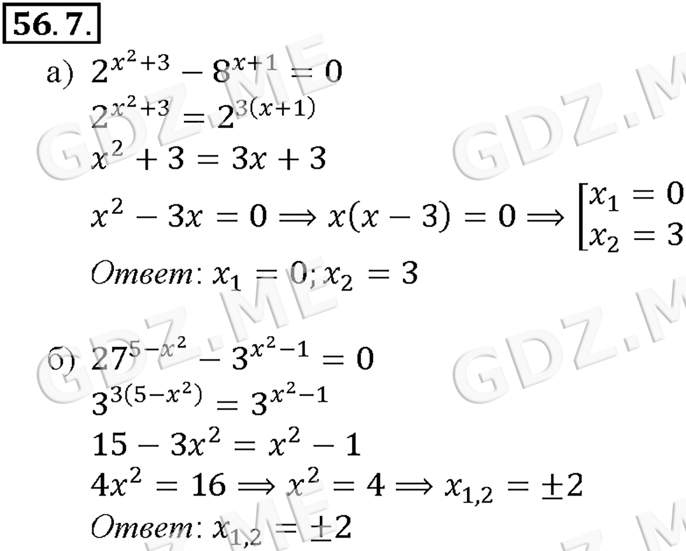 Подробный вариант решения из решебника (ГДЗ): Задание номер 56-7 (Глава 9 Элементы математической статистики, комбинаторики и теории. Глава 10 Уравнения и неравенства. Системы уравнений и неравенств. §56. Общие методы решения уравнений) по предмету Алгебра, за 10 класс, авторы учебника Мордкович, Александрова.