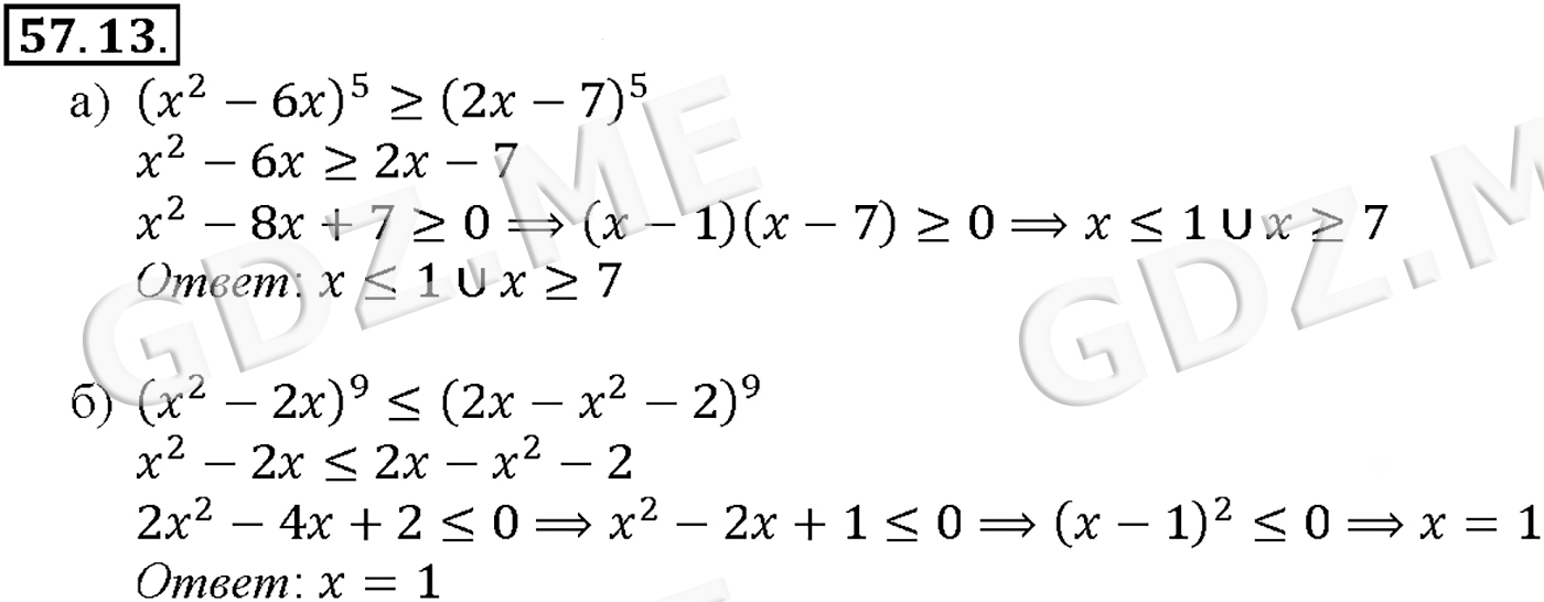 Подробный вариант решения из решебника (ГДЗ): Задание номер 57-13 (Глава 9 Элементы математической статистики, комбинаторики и теории. Глава 10 Уравнения и неравенства. Системы уравнений и неравенств. §57. Решение неравенств с одной переменной) по предмету Алгебра, за 10 класс, авторы учебника Мордкович, Александрова.