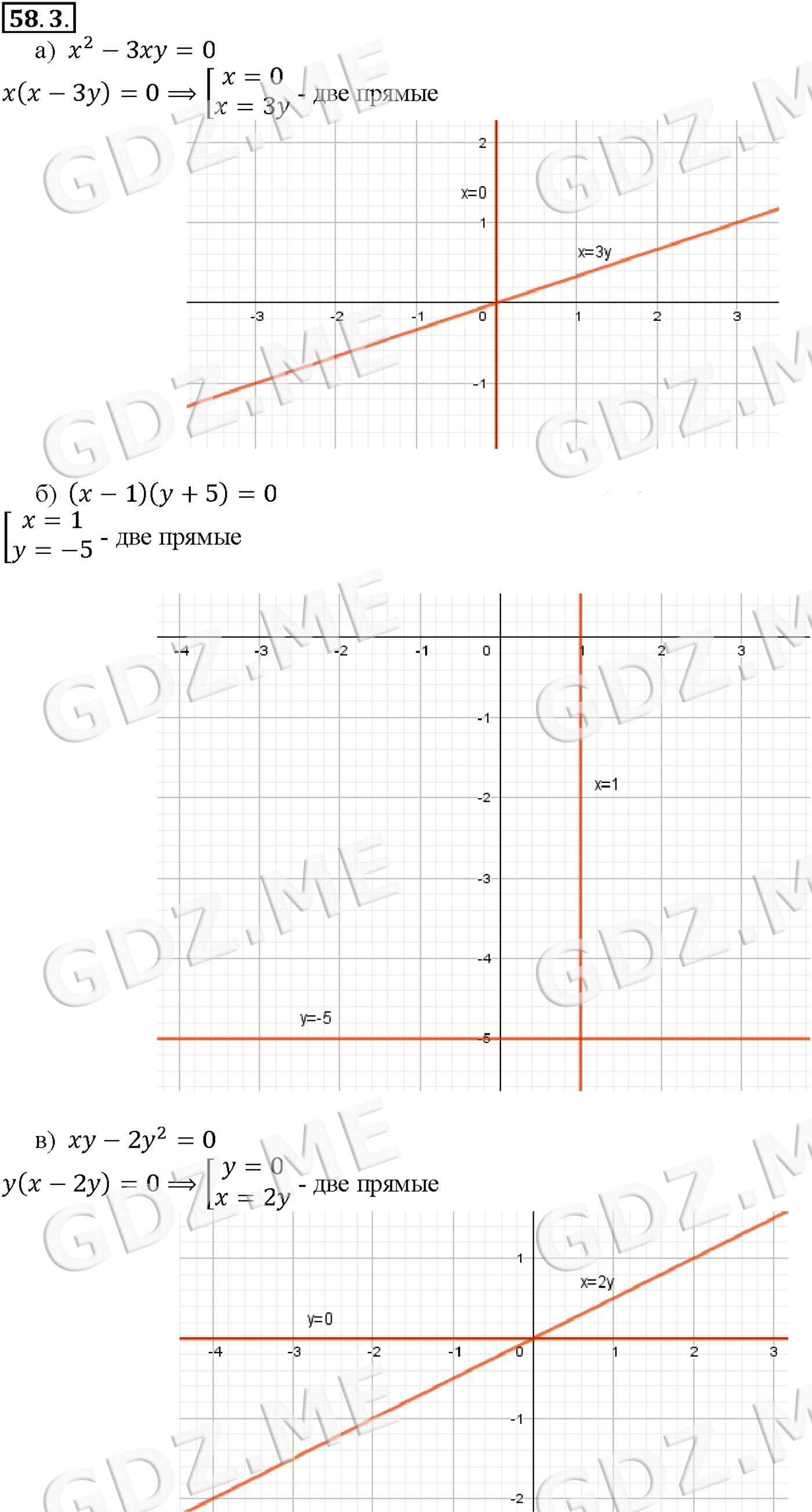 Подробный вариант решения из решебника (ГДЗ): Задание номер 58-3_1 (Глава 9 Элементы математической статистики, комбинаторики и теории. Глава 10 Уравнения и неравенства. Системы уравнений и неравенств. §58. Уравнения и неравенства с двумя переменными) по предмету Алгебра, за 10 класс, авторы учебника Мордкович, Александрова.