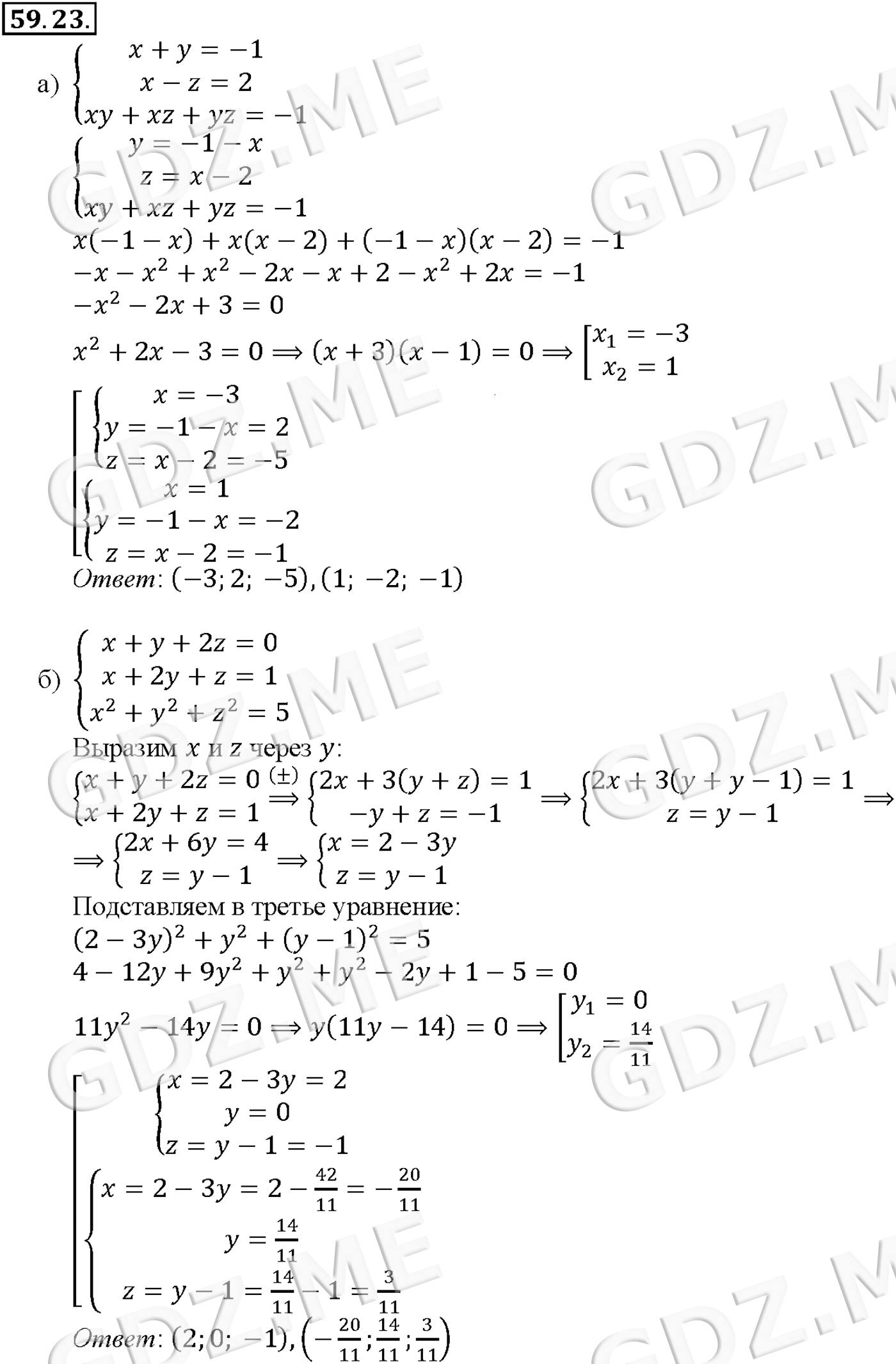 Подробный вариант решения из решебника (ГДЗ): Задание номер 59-23 (Глава 9 Элементы математической статистики, комбинаторики и теории. Глава 10 Уравнения и неравенства. Системы уравнений и неравенств. §59. Системы уравнений) по предмету Алгебра, за 10 класс, авторы учебника Мордкович, Александрова.
