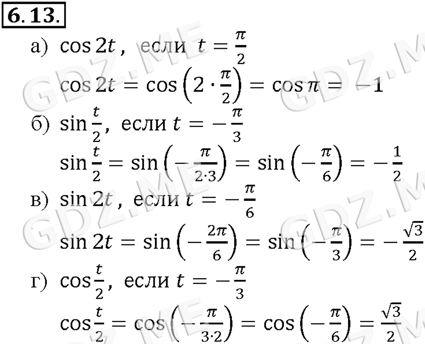 Подробный вариант решения из решебника (ГДЗ): Задание номер 6-13 (Глава 2 Тригонометрические функции. §6. Синус и косинус. Тангенс и котангенс) по предмету Алгебра, за 10 класс, авторы учебника Мордкович, Александрова.