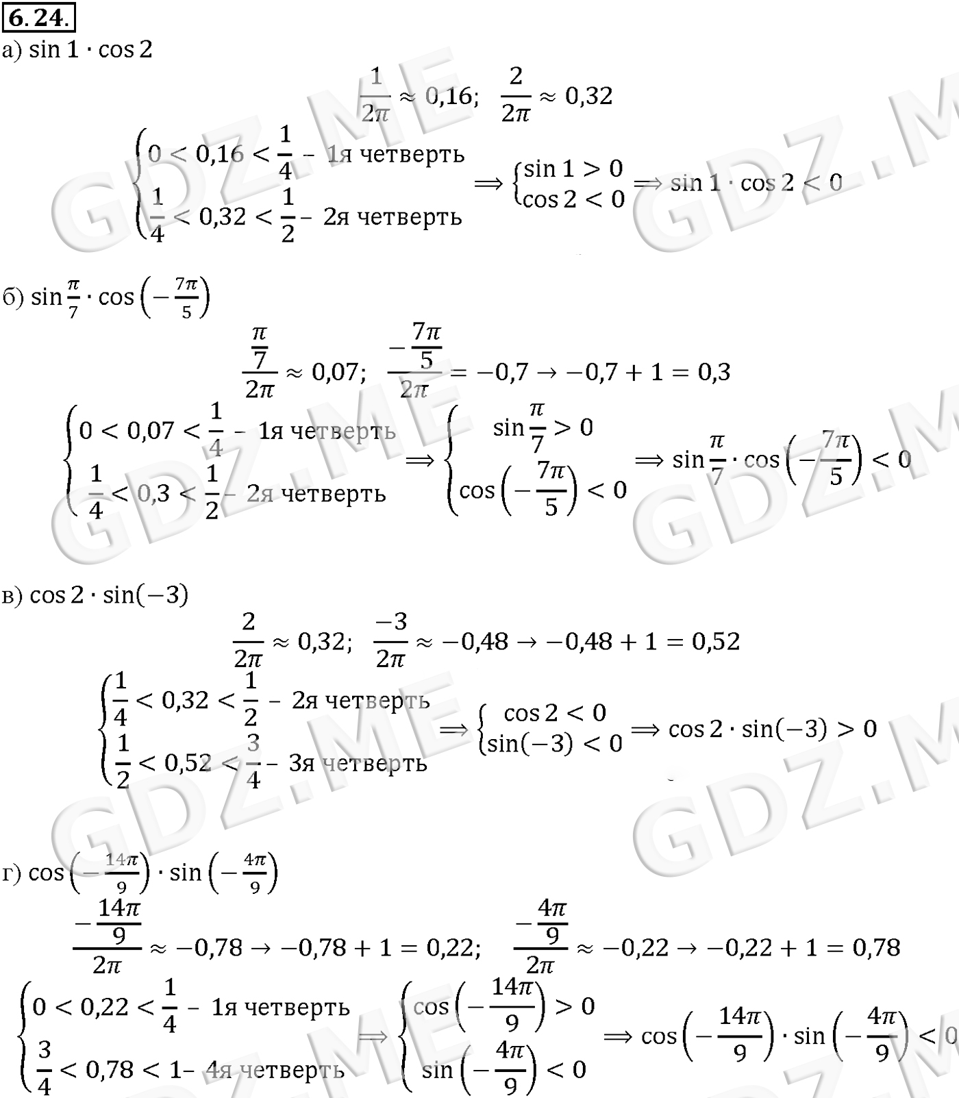 Подробный вариант решения из решебника (ГДЗ): Задание номер 6-24 (Глава 2 Тригонометрические функции. §6. Синус и косинус. Тангенс и котангенс) по предмету Алгебра, за 10 класс, авторы учебника Мордкович, Александрова.
