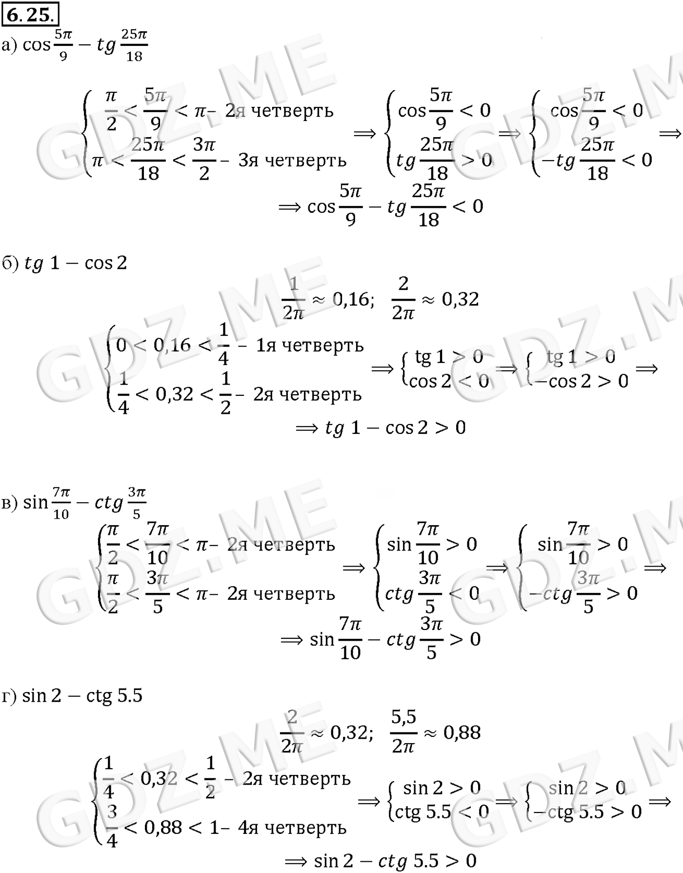Подробный вариант решения из решебника (ГДЗ): Задание номер 6-25 (Глава 2 Тригонометрические функции. §6. Синус и косинус. Тангенс и котангенс) по предмету Алгебра, за 10 класс, авторы учебника Мордкович, Александрова.