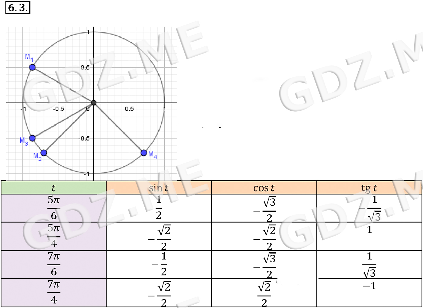 Подробный вариант решения из решебника (ГДЗ): Задание номер 6-3 (Глава 2 Тригонометрические функции. §6. Синус и косинус. Тангенс и котангенс) по предмету Алгебра, за 10 класс, авторы учебника Мордкович, Александрова.