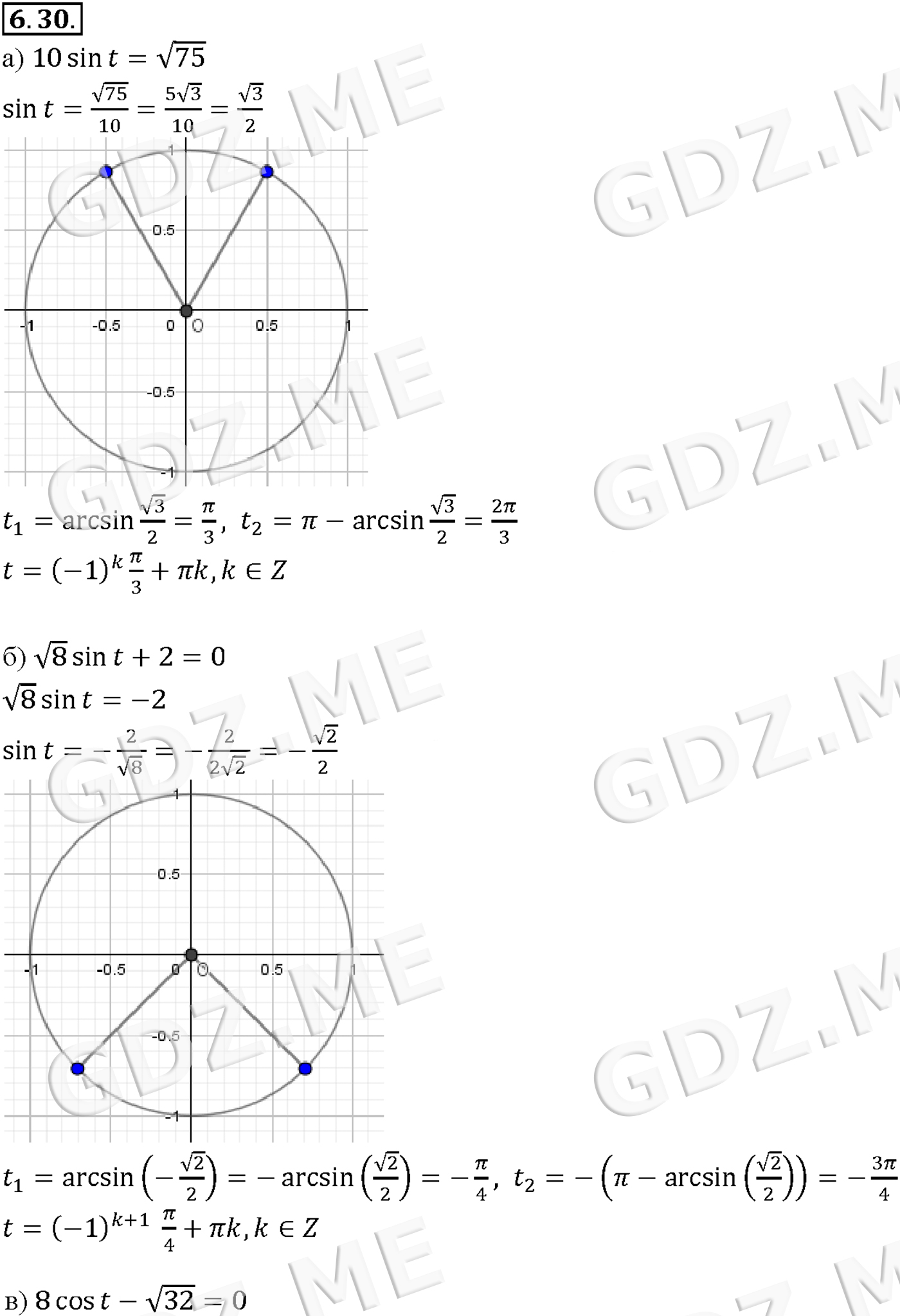 Подробный вариант решения из решебника (ГДЗ): Задание номер 6-30_1 (Глава 2 Тригонометрические функции. §6. Синус и косинус. Тангенс и котангенс) по предмету Алгебра, за 10 класс, авторы учебника Мордкович, Александрова.