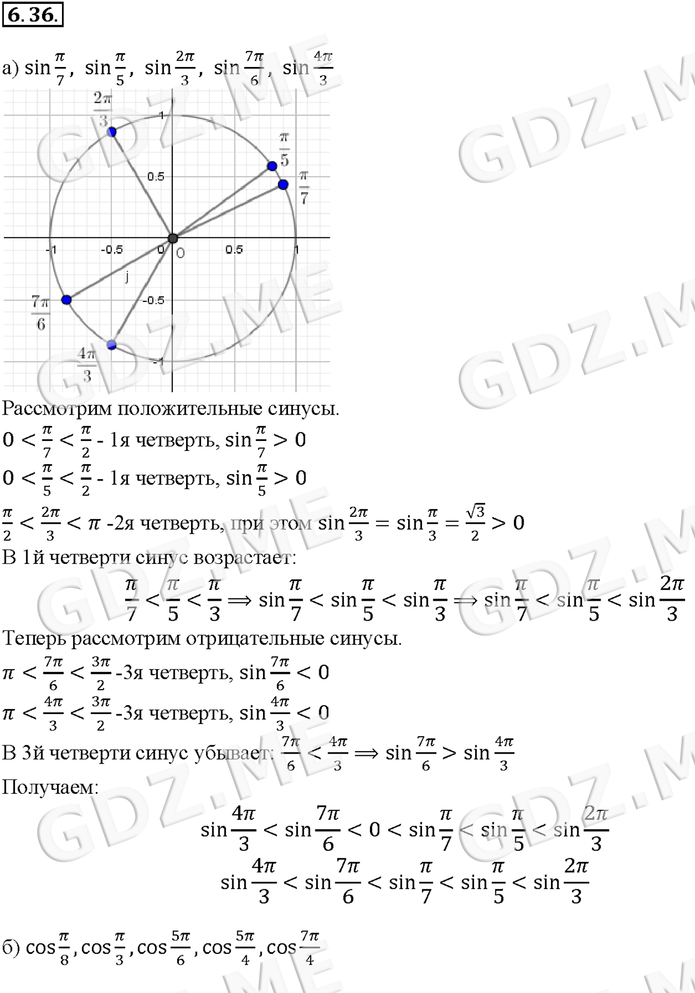 Подробный вариант решения из решебника (ГДЗ): Задание номер 6-36_1 (Глава 2 Тригонометрические функции. §6. Синус и косинус. Тангенс и котангенс) по предмету Алгебра, за 10 класс, авторы учебника Мордкович, Александрова.