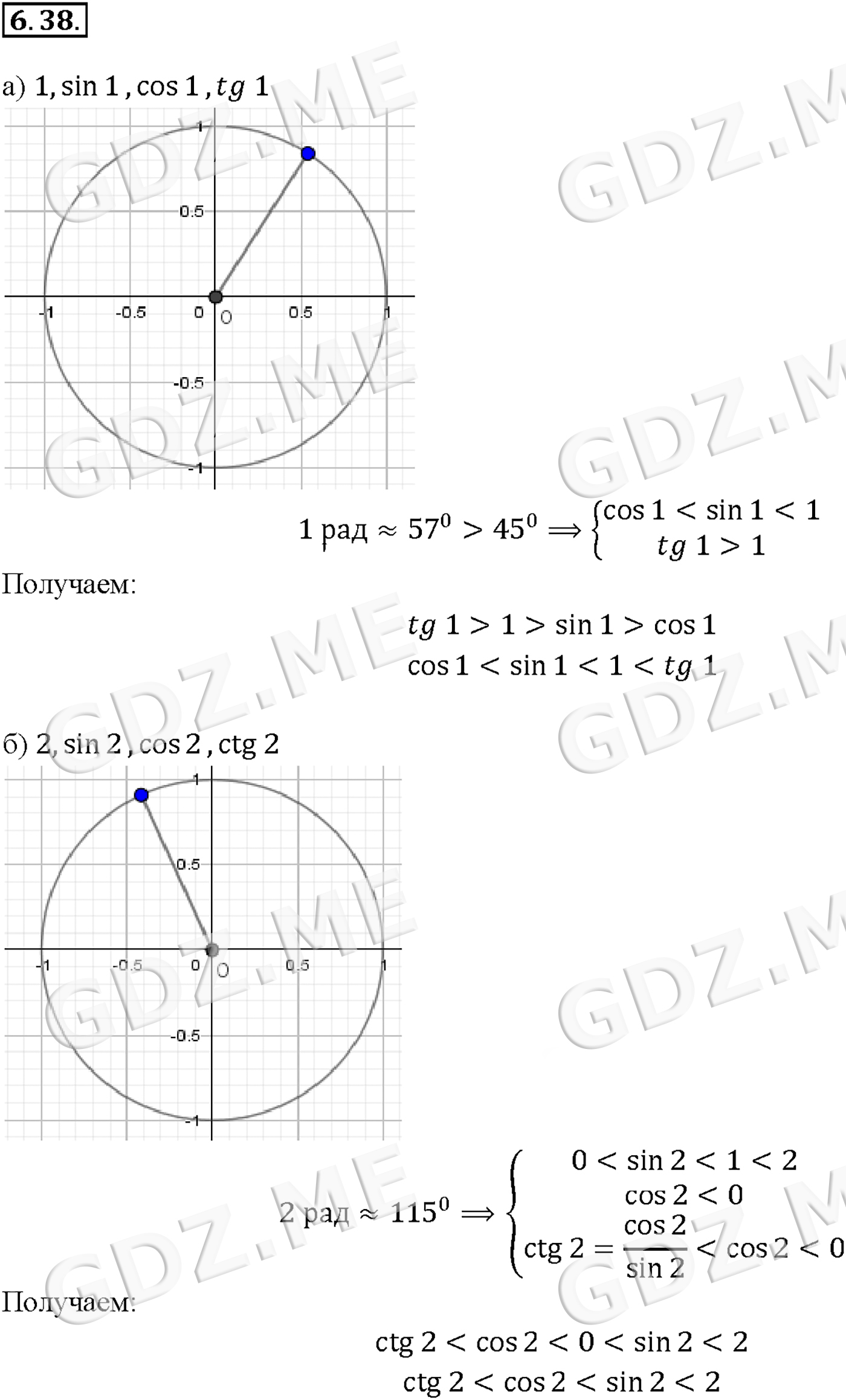 Подробный вариант решения из решебника (ГДЗ): Задание номер 6-38 (Глава 2 Тригонометрические функции. §6. Синус и косинус. Тангенс и котангенс) по предмету Алгебра, за 10 класс, авторы учебника Мордкович, Александрова.
