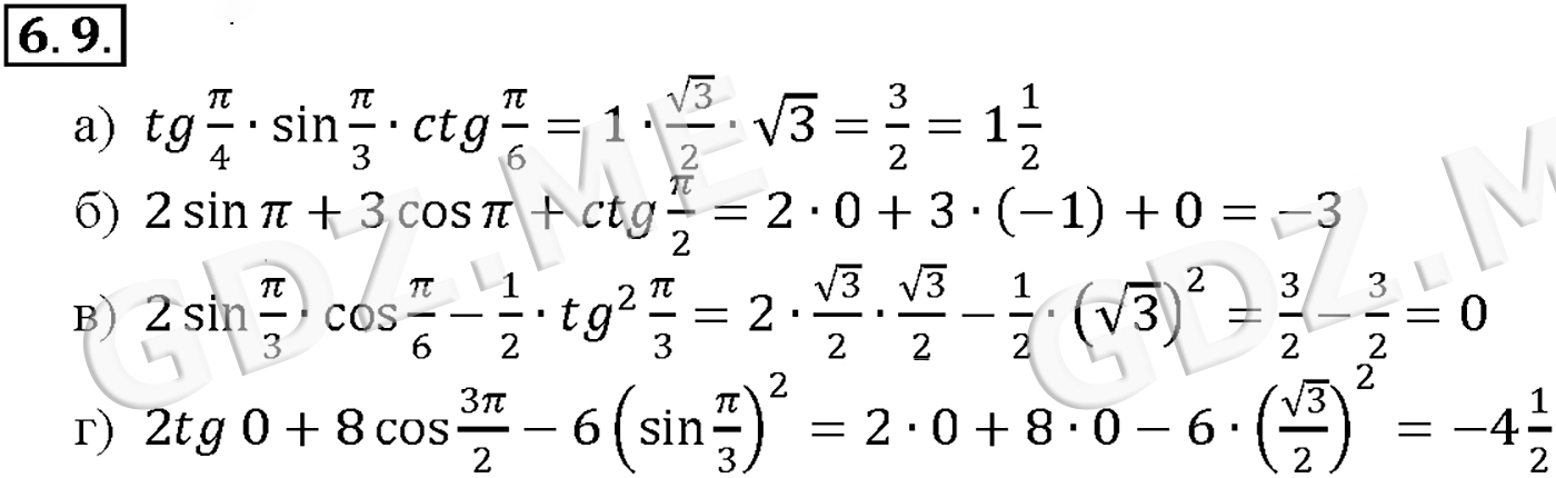 Подробный вариант решения из решебника (ГДЗ): Задание номер 6-9 (Глава 2 Тригонометрические функции. §6. Синус и косинус. Тангенс и котангенс) по предмету Алгебра, за 10 класс, авторы учебника Мордкович, Александрова.