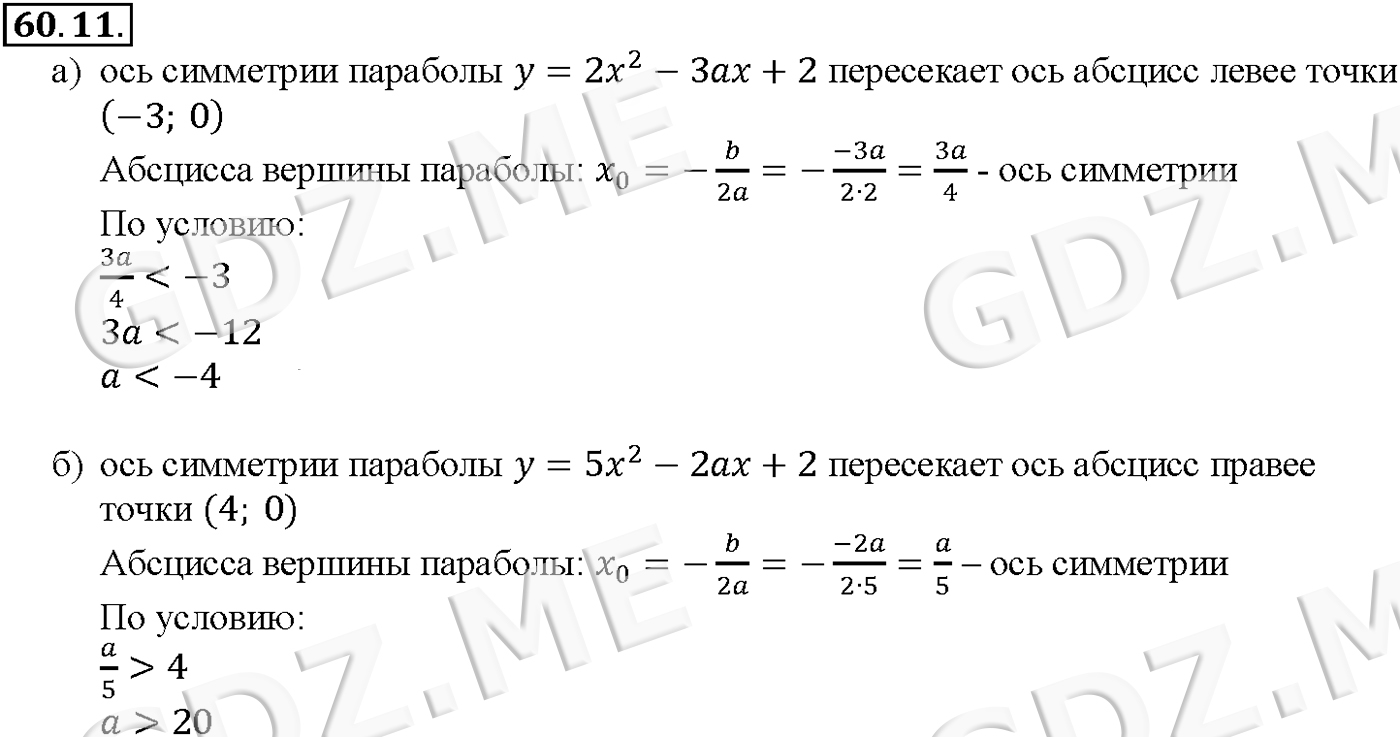 Подробный вариант решения из решебника (ГДЗ): Задание номер 60-11 (Глава 9 Элементы математической статистики, комбинаторики и теории. Глава 10 Уравнения и неравенства. Системы уравнений и неравенств. §60. Задачи с параметрами) по предмету Алгебра, за 10 класс, авторы учебника Мордкович, Александрова.