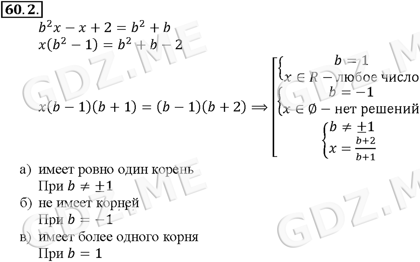 Подробный вариант решения из решебника (ГДЗ): Задание номер 60-2 (Глава 9 Элементы математической статистики, комбинаторики и теории. Глава 10 Уравнения и неравенства. Системы уравнений и неравенств. §60. Задачи с параметрами) по предмету Алгебра, за 10 класс, авторы учебника Мордкович, Александрова.