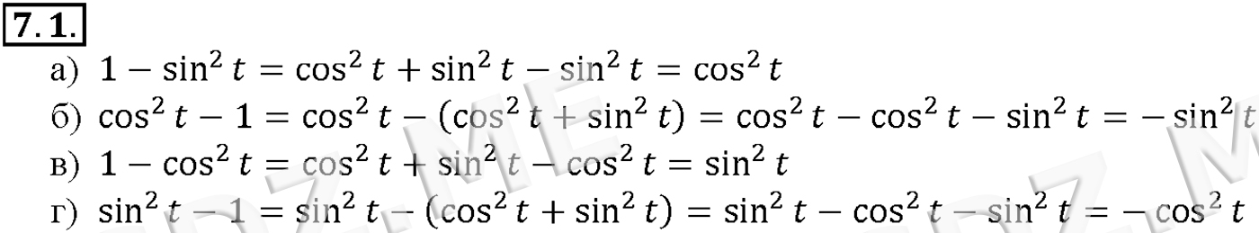 Подробный вариант решения из решебника (ГДЗ): Задание номер 7-1 (Глава 2 Тригонометрические функции. §7. Тригонометрические функции числового аргумента) по предмету Алгебра, за 10 класс, авторы учебника Мордкович, Александрова.