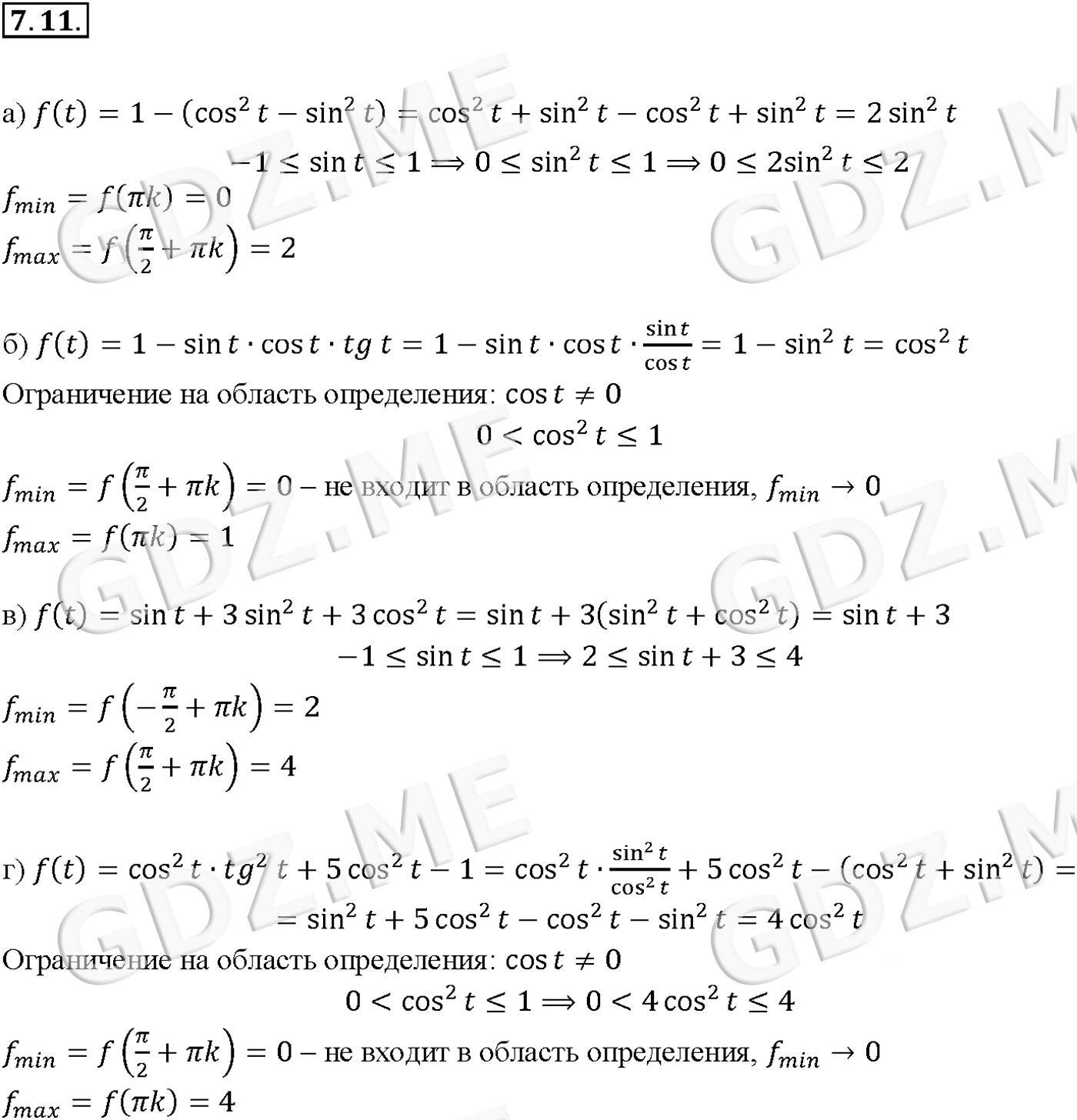 Подробный вариант решения из решебника (ГДЗ): Задание номер 7-11 (Глава 2 Тригонометрические функции. §7. Тригонометрические функции числового аргумента) по предмету Алгебра, за 10 класс, авторы учебника Мордкович, Александрова.