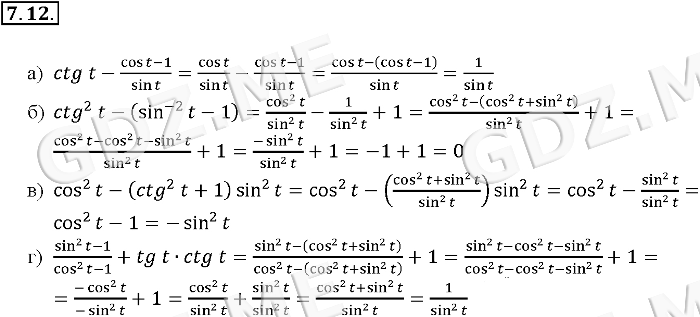 Подробный вариант решения из решебника (ГДЗ): Задание номер 7-12 (Глава 2 Тригонометрические функции. §7. Тригонометрические функции числового аргумента) по предмету Алгебра, за 10 класс, авторы учебника Мордкович, Александрова.