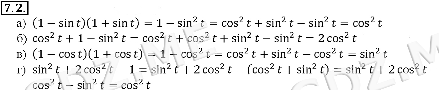 Подробный вариант решения из решебника (ГДЗ): Задание номер 7-2 (Глава 2 Тригонометрические функции. §7. Тригонометрические функции числового аргумента) по предмету Алгебра, за 10 класс, авторы учебника Мордкович, Александрова.