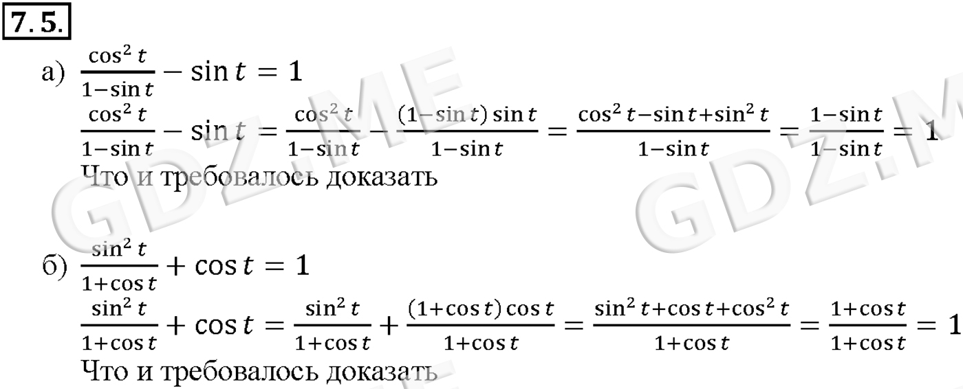 Подробный вариант решения из решебника (ГДЗ): Задание номер 7-5 (Глава 2 Тригонометрические функции. §7. Тригонометрические функции числового аргумента) по предмету Алгебра, за 10 класс, авторы учебника Мордкович, Александрова.