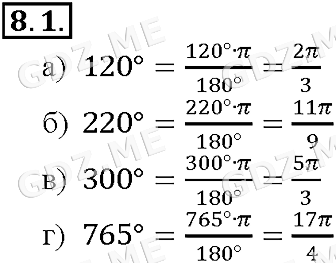 Подробный вариант решения из решебника (ГДЗ): Задание номер 8-1 (Глава 2 Тригонометрические функции. §8. Тригонометрические функции углового аргумента) по предмету Алгебра, за 10 класс, авторы учебника Мордкович, Александрова.
