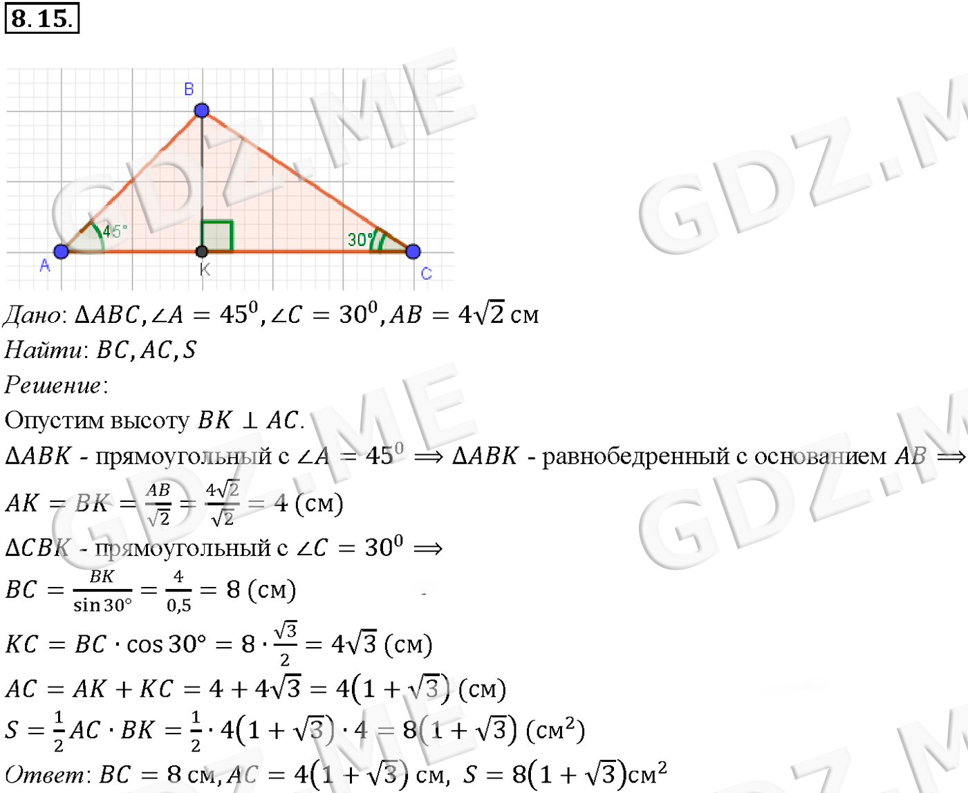 Подробный вариант решения из решебника (ГДЗ): Задание номер 8-15 (Глава 2 Тригонометрические функции. §8. Тригонометрические функции углового аргумента) по предмету Алгебра, за 10 класс, авторы учебника Мордкович, Александрова.