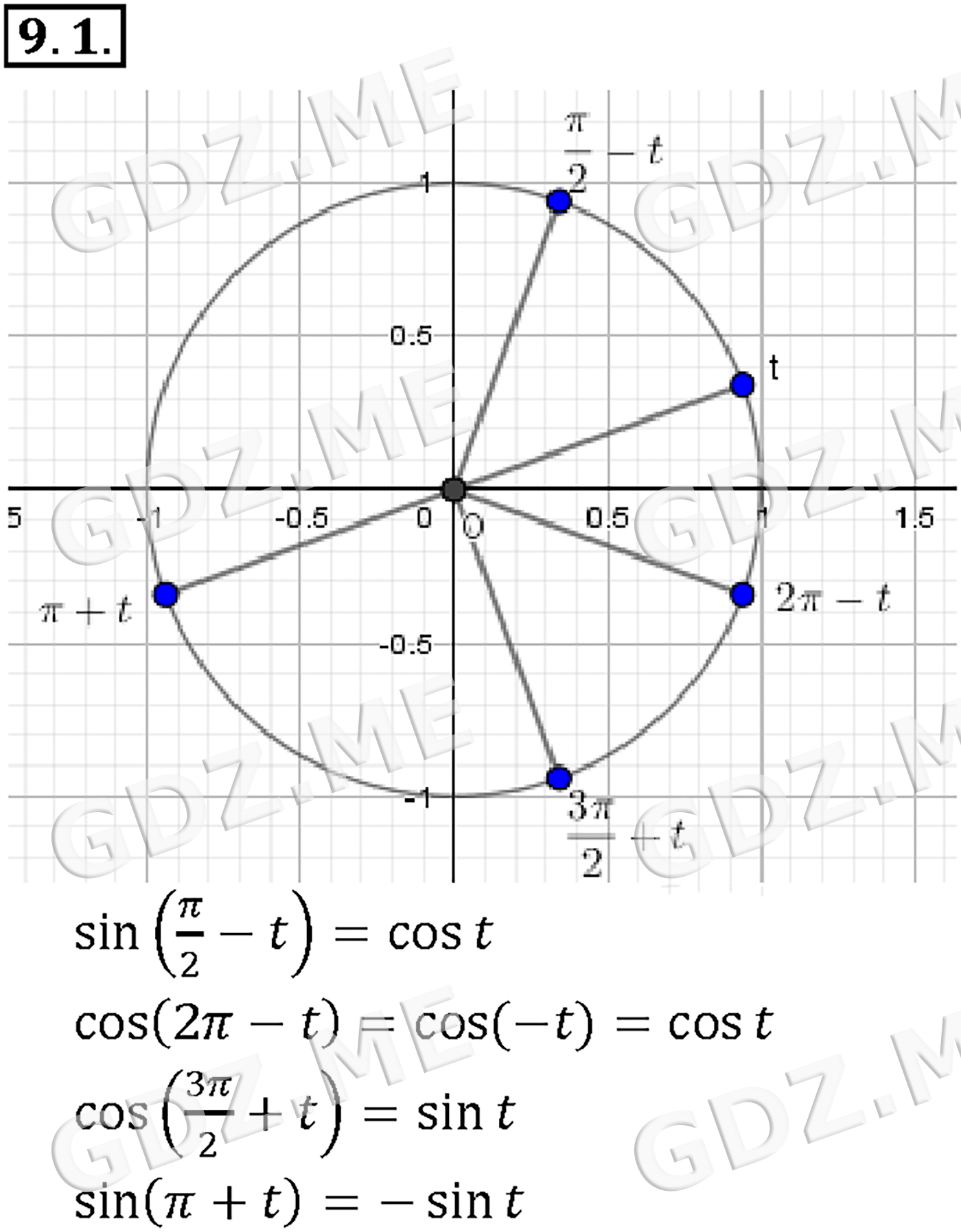 Подробный вариант решения из решебника (ГДЗ): Задание номер 9-1 (Глава 2 Тригонометрические функции. §9. Формулы приведения) по предмету Алгебра, за 10 класс, авторы учебника Мордкович, Александрова.