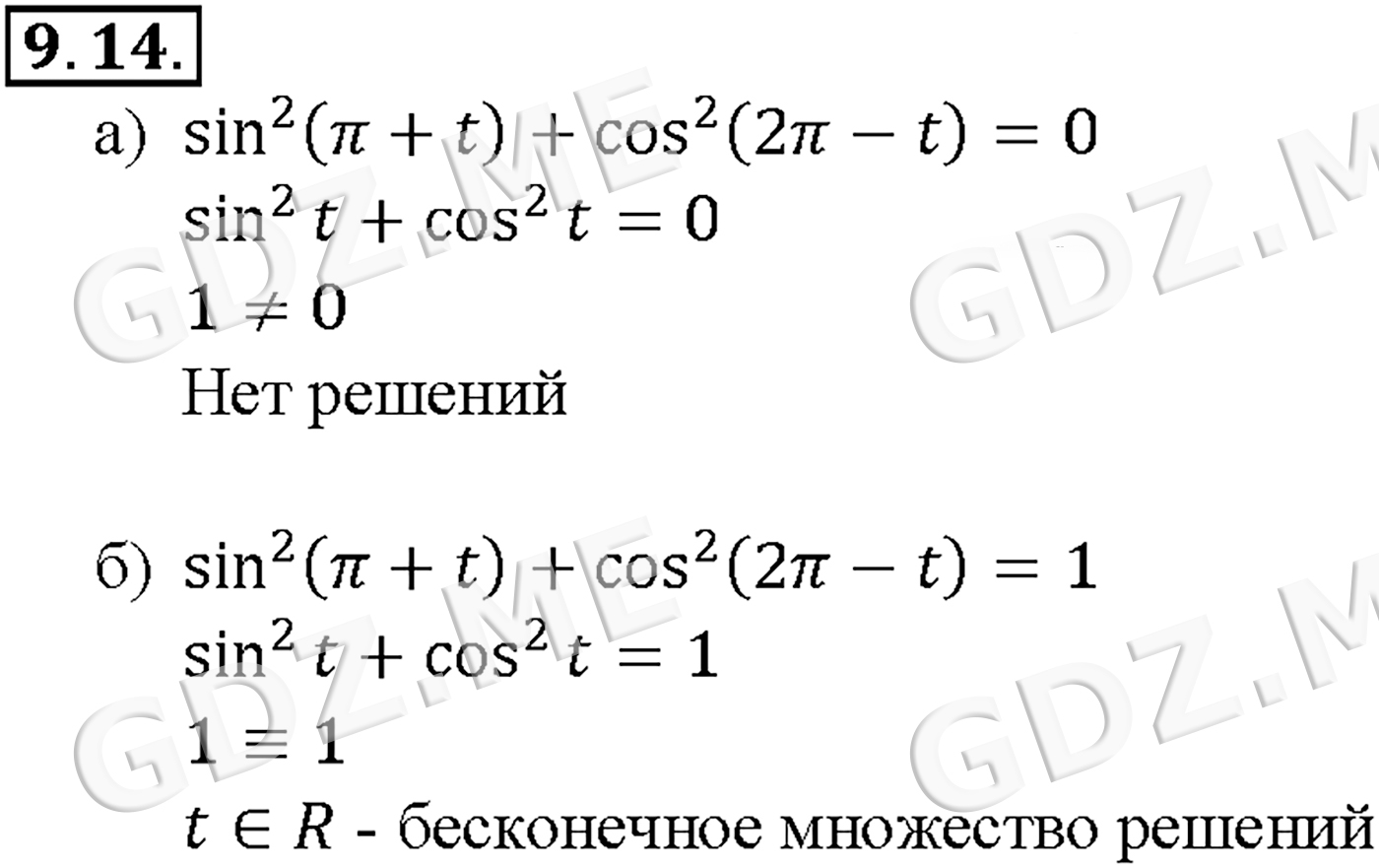 Подробный вариант решения из решебника (ГДЗ): Задание номер 9-14 (Глава 2 Тригонометрические функции. §9. Формулы приведения) по предмету Алгебра, за 10 класс, авторы учебника Мордкович, Александрова.