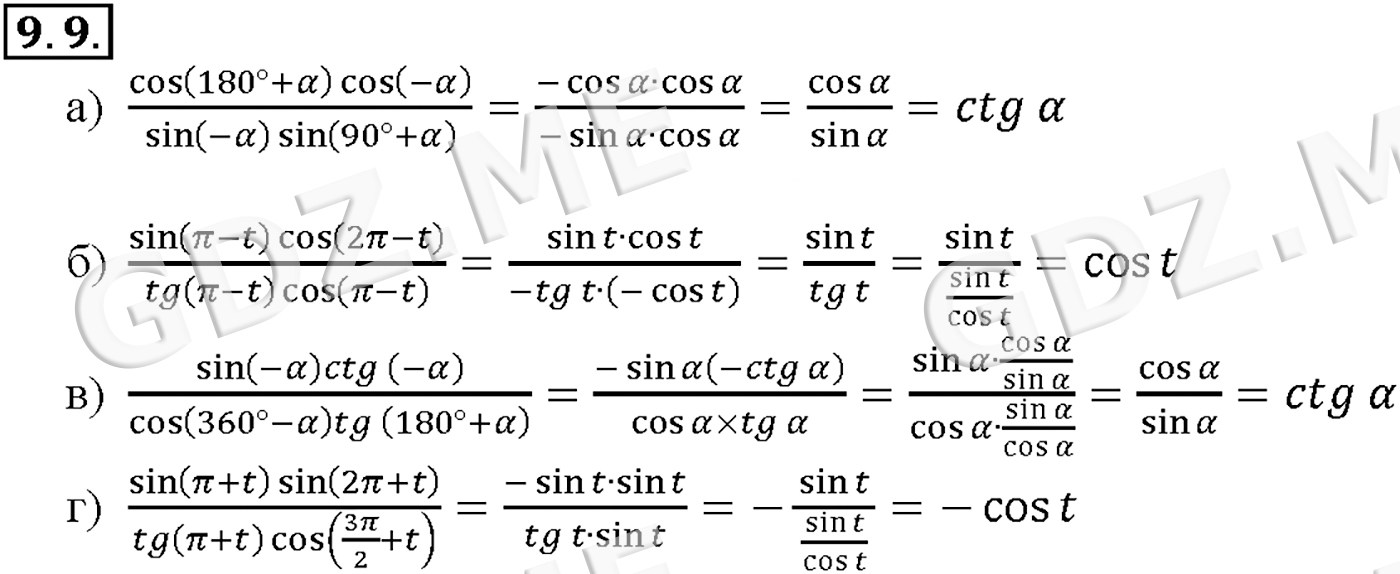 Подробный вариант решения из решебника (ГДЗ): Задание номер 9-9 (Глава 2 Тригонометрические функции. §9. Формулы приведения) по предмету Алгебра, за 10 класс, авторы учебника Мордкович, Александрова.