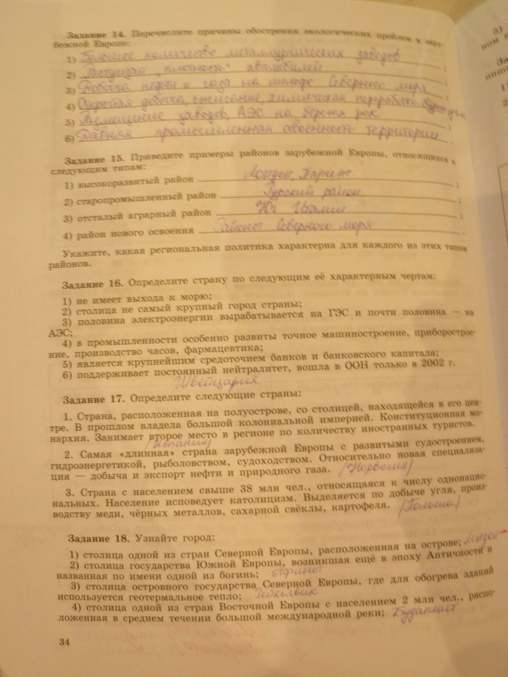 Подробный вариант решения из решебника (ГДЗ): Страница номер 34 по предмету География, за 10 класс, авторы учебника Максаковский В.П..