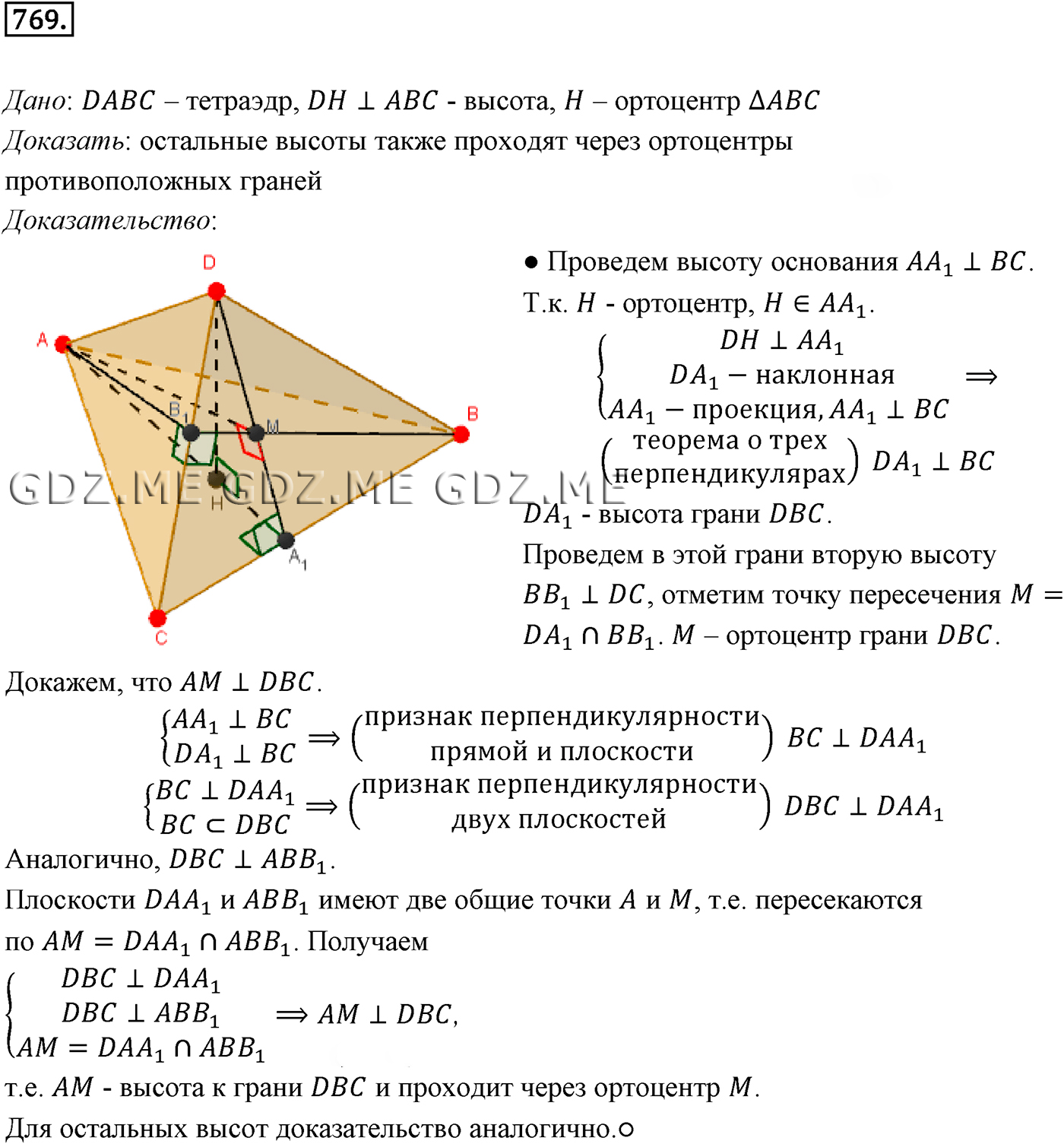 Подробный вариант решения из решебника (ГДЗ): Задание номер 769 (Глава 7 Метод координат в пространстве. Движения) по предмету Геометрия, за 10 класс, авторы учебника Атанасян, Бутузов, Кадомцев.