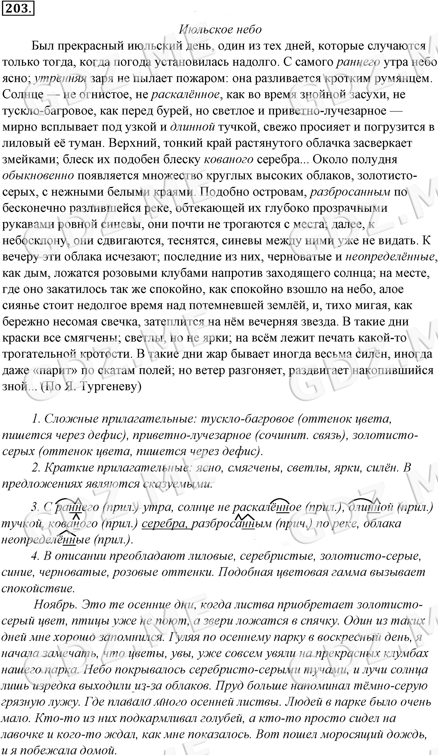 ГДЗ по Русскому языку за 10-11 класс Гольцова. Ответ на Задание номер 203 (Морфология и Орфография)