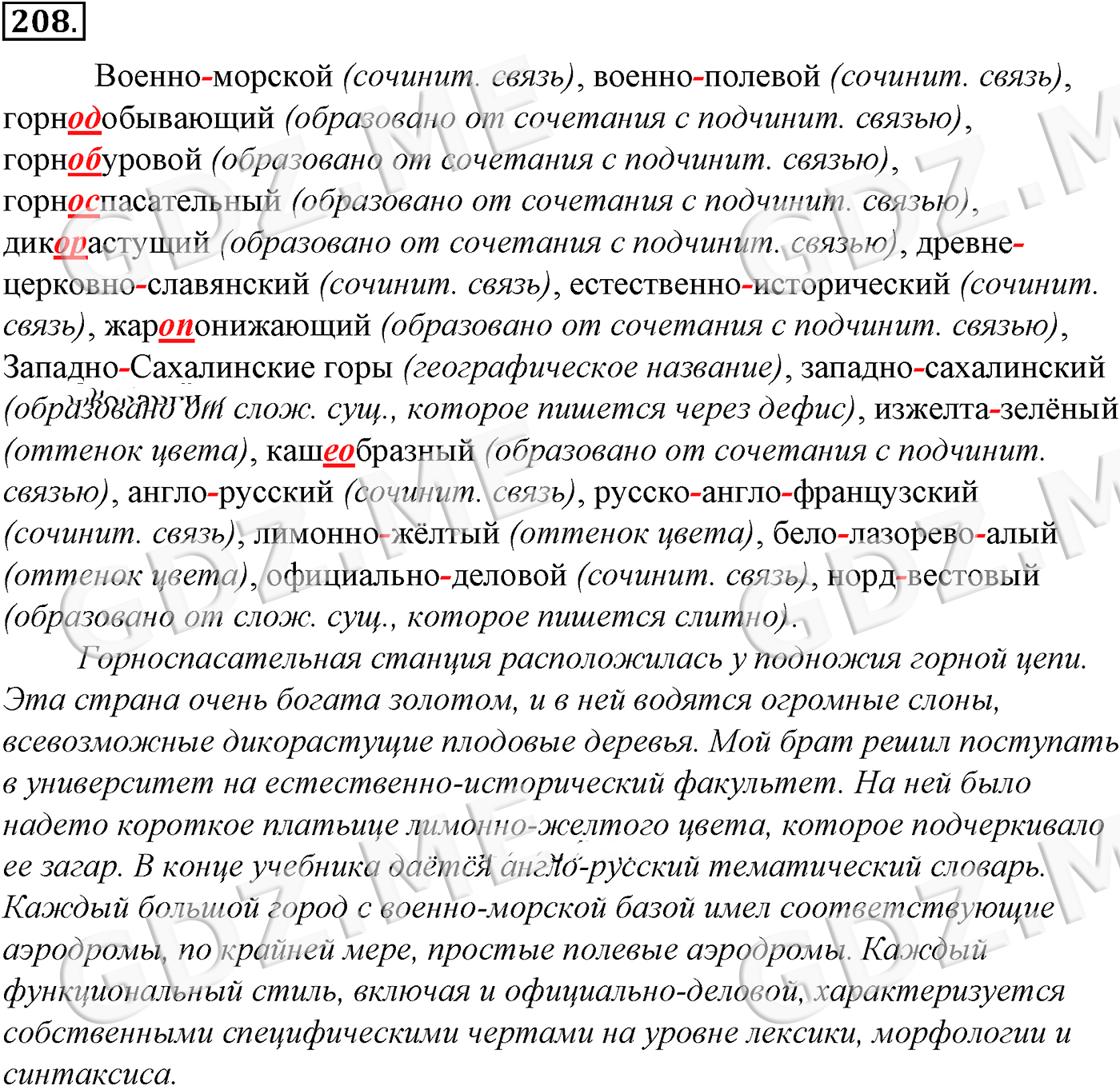 ГДЗ по Русскому языку за 10-11 класс Гольцова. Ответ на Задание номер 208 (Морфология и Орфография)