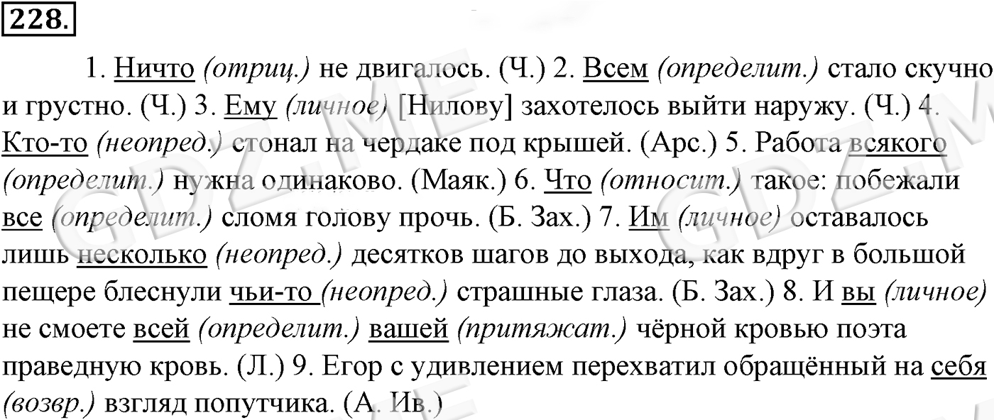 ГДЗ по Русскому языку за 10-11 класс Гольцова. Ответ на Задание номер 228 (Морфология и Орфография)