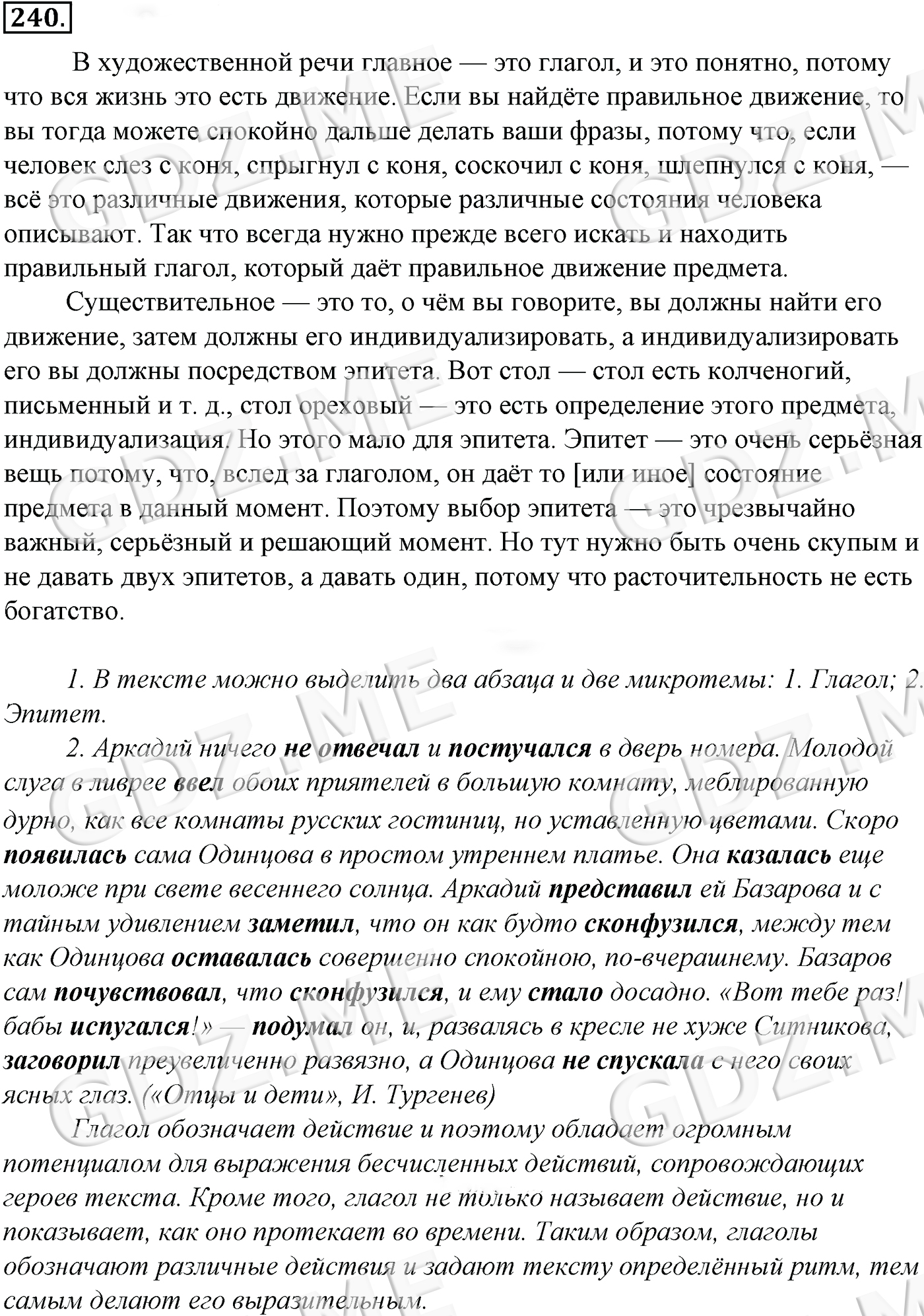 ГДЗ по Русскому языку за 10-11 класс Гольцова. Ответ на Задание номер 240 (Морфология и Орфография)