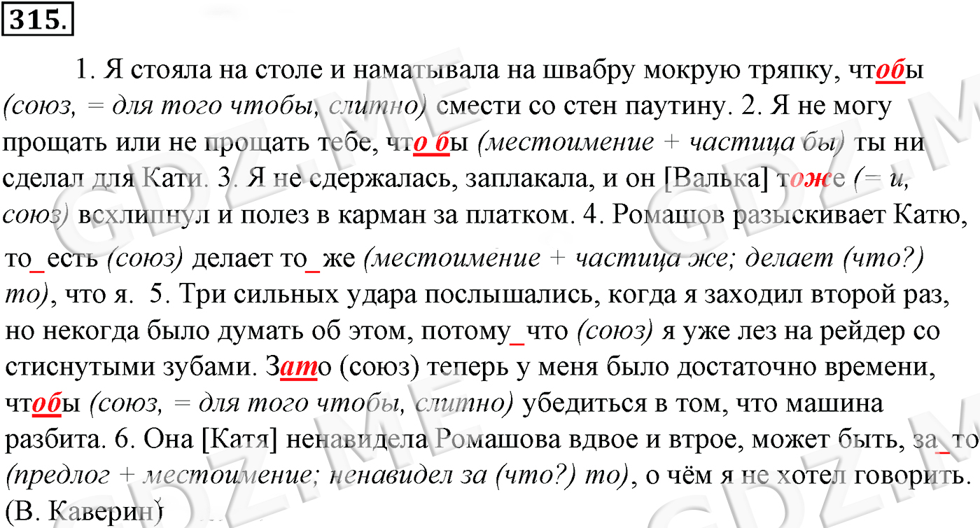 Подробный вариант решения из решебника (ГДЗ): Задание номер 315 (Морфология и Орфография) по предмету Русский язык, за 10 класс, авторы учебника Гольцова, Шамшин.