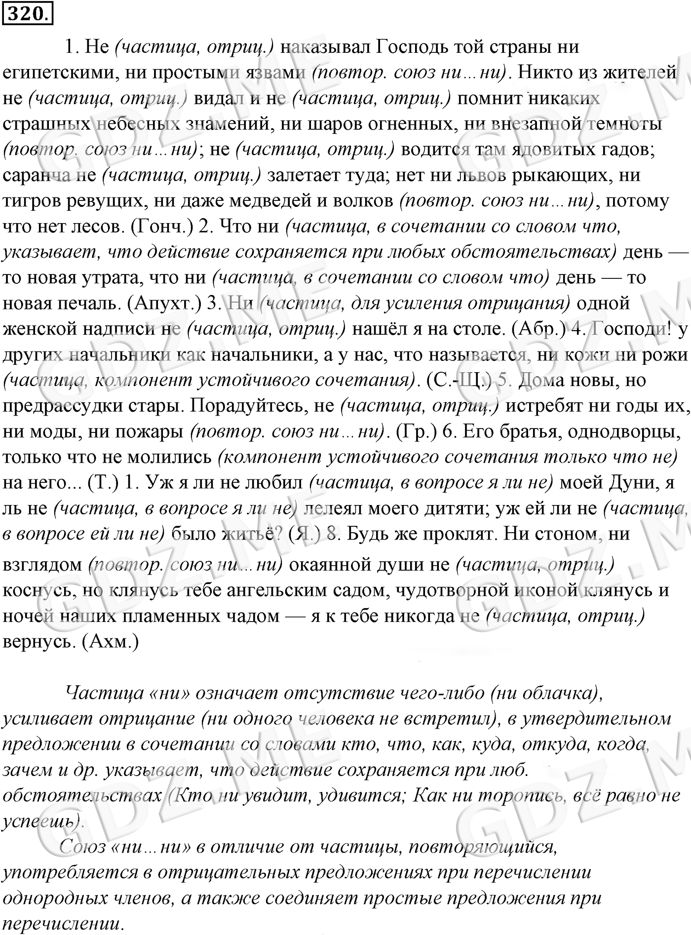 ГДЗ по Русскому языку за 10-11 класс Гольцова. Ответ на Задание номер 320 (Морфология и Орфография)