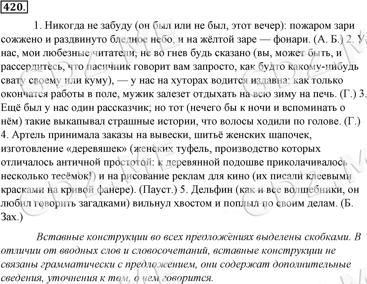 ГДЗ по Русскому языку за 10-11 класс Гольцова. Ответ на Задание номер 420 (Синтаксис и пунктуация)