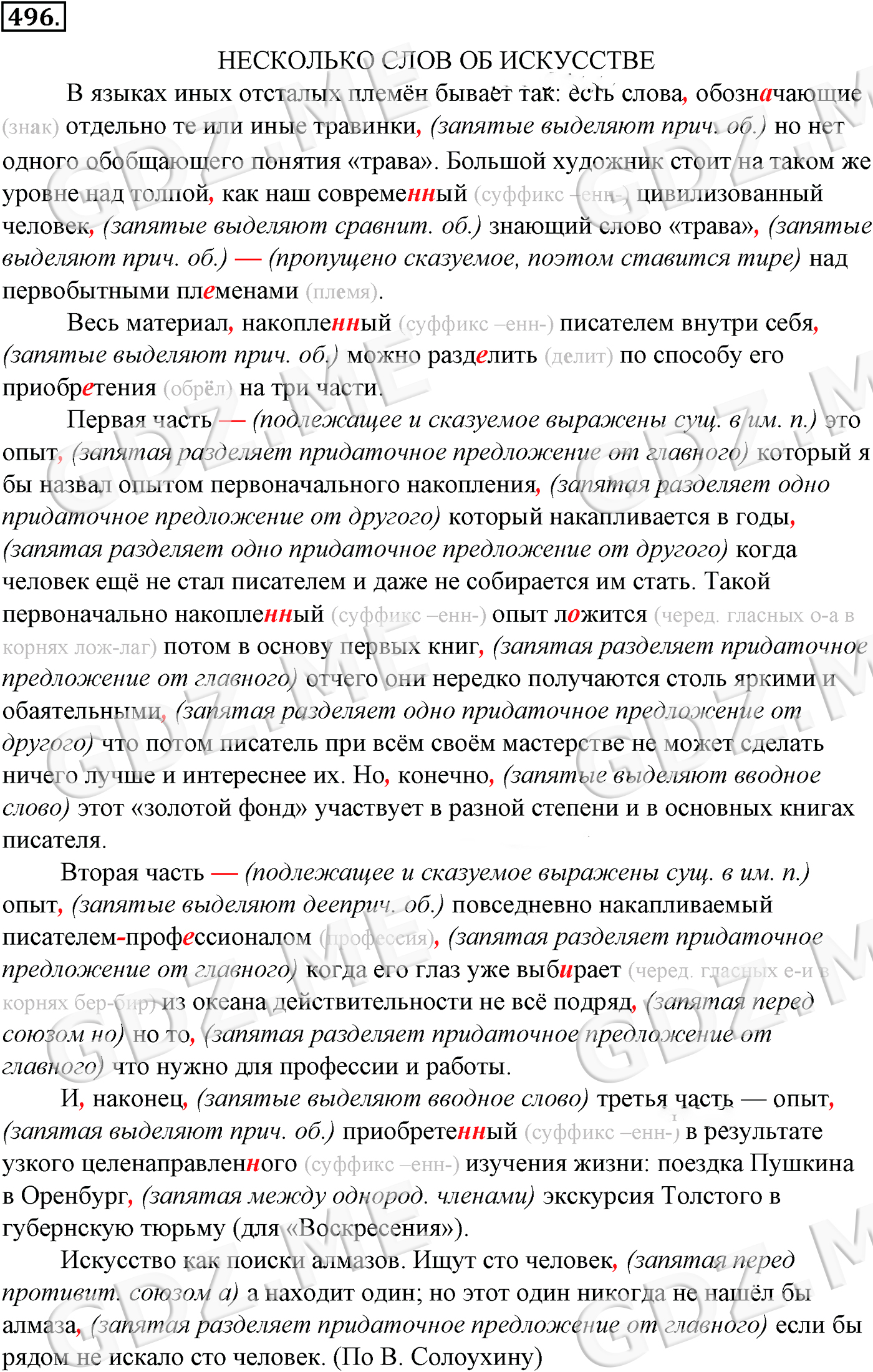 ГДЗ по Русскому языку за 10-11 класс Гольцова. Ответ на Задание номер 496 (Синтаксис и пунктуация)