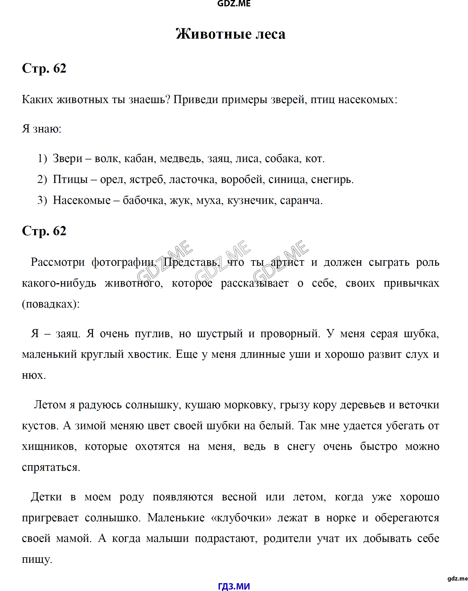 ГДЗ по окружающему миру 2 класс Виноградова. Ответ на Страница номер 62 (Часть 2. Страницы)